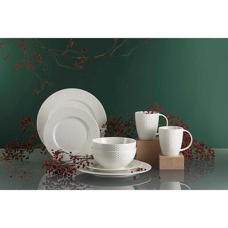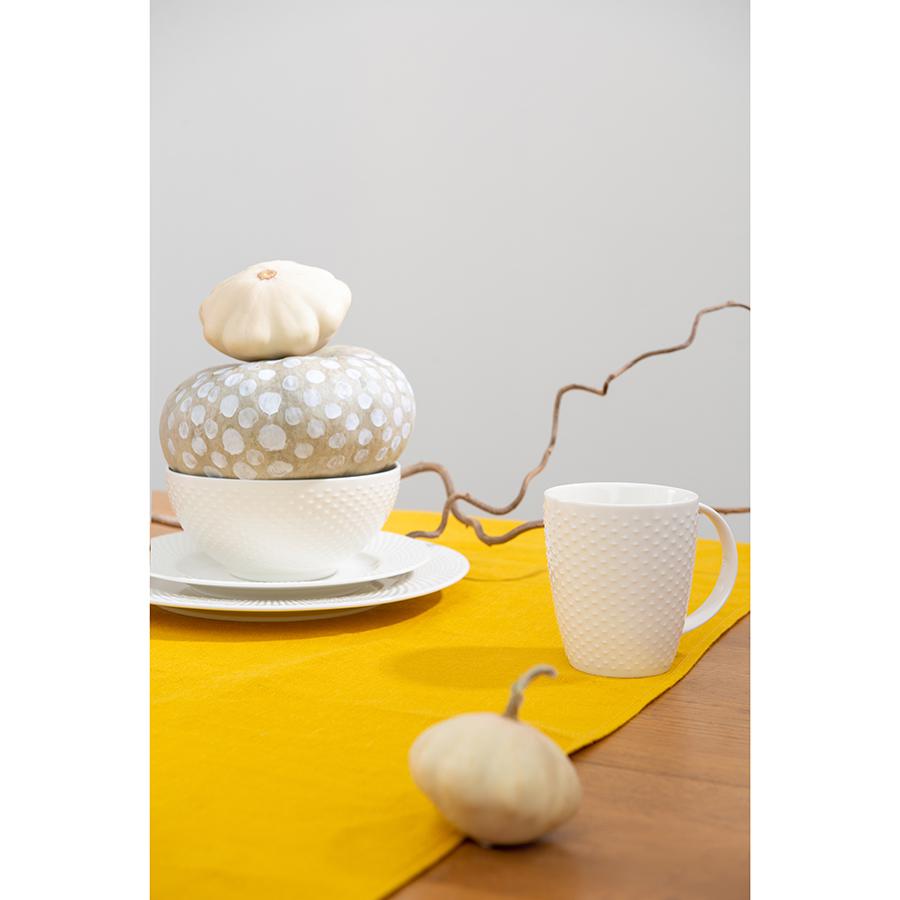 Кружка белого цвета с фактурным рисунком из коллекции Essential станет неотъемлемым атрибутом уютного чаепития. Большая удобная ручка и тактильно приятный фактурный декор украсят сервировку. Изделие из экологичного и практичного материала отличается прочностью, не выделяет вредных веществ при нагревании, легко очищается от загрязнений в теплой мыльной воде. Посуда из коллекции Essential отлично комбинируется между собой в сервировке и хорошо дополнит изделия из других линеек. Объем: 350 мл. Материал: фарфор. ! Можно использовать в микроволновой печи ! Можно мыть в посудомоечной машине ! Можно использовать в духовке при температуре не более 300° C ! Можно замораживать