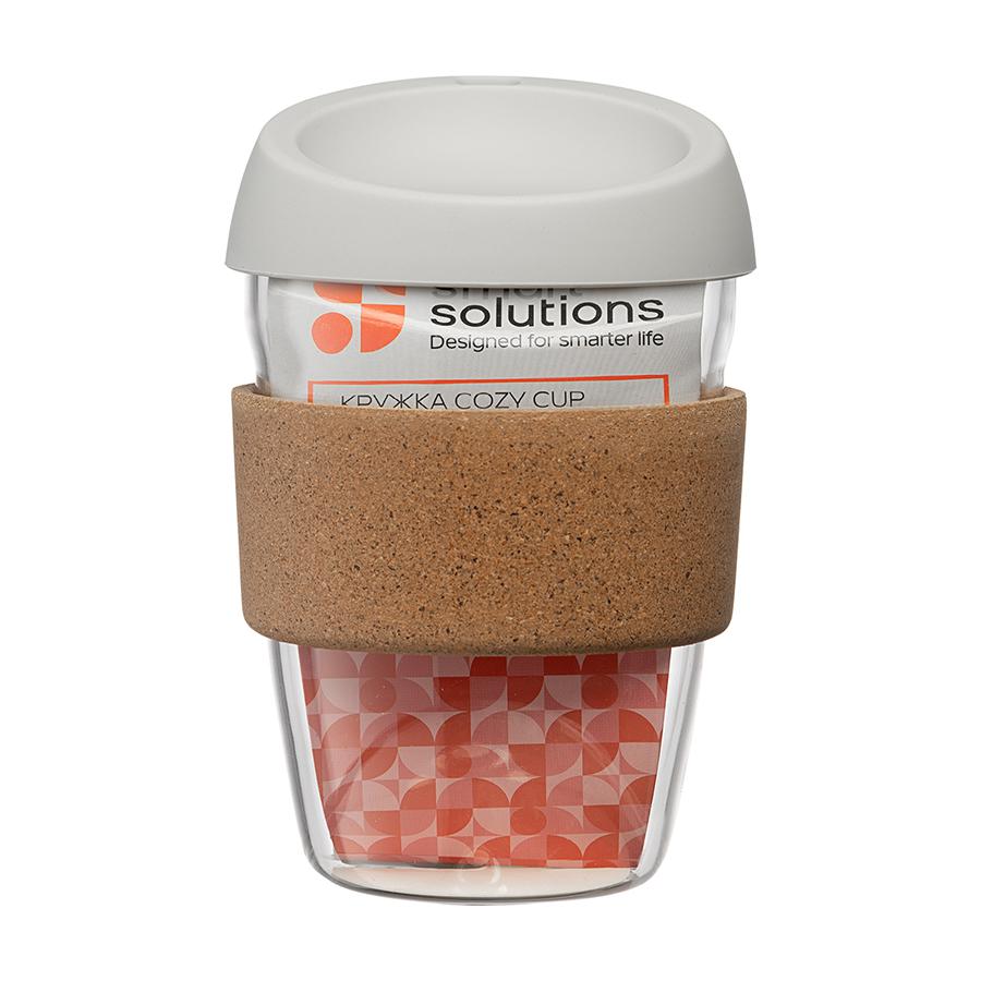 Кружка Cozy Cup создана, чтобы наполнять каждый день приятными эмоциями. Легкая и компактная, она станет вашим верным спутником во время пеших прогулок или поездок на автомобиле. Не отказывайте себе в удовольствии всегда брать с собой любимые напитки. Особенности и преимущества: - Боросиликатное стекло устойчиво к температурным перепадам, повреждениям, не впитывает запахи, сохраняет прозрачность и гигиеничность долгие годы. - Крышка из силикона плотно прилегает к кружке, сохраняя температуру напитка и предотвращая его проливание. - Пробковый ободок добавляет дизайну изюминку, обеспечивает удобный и надежный хват, защищая руки от ожогов. - Материалы являются экологичными и не содержат в своем составе вредных соединений. Материалы: боросиликатное стекло, силикон, пробка. Диаметр низа: 6 см. Диаметр верха: 8,8 см. Высота: 13,4 см. Объем: 350 мл. Цвет: светло-серый. Можно мыть в посудомоечной машине (без пробкового рукава), замораживать, использовать в микроволновой печи.