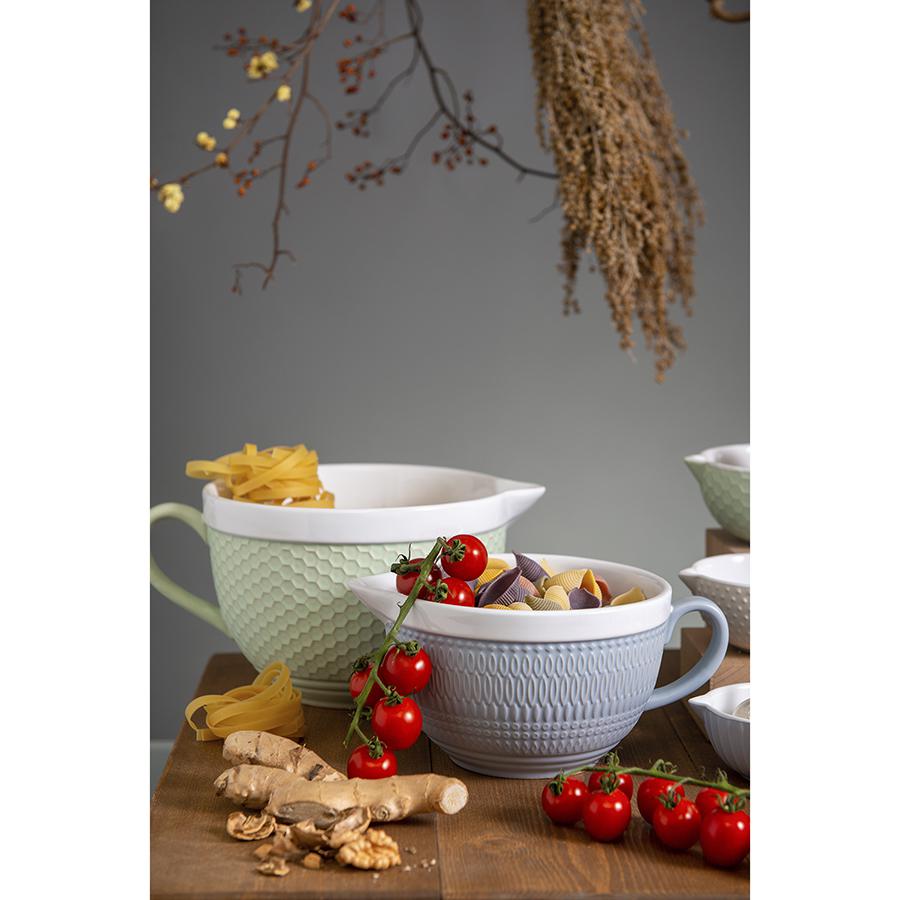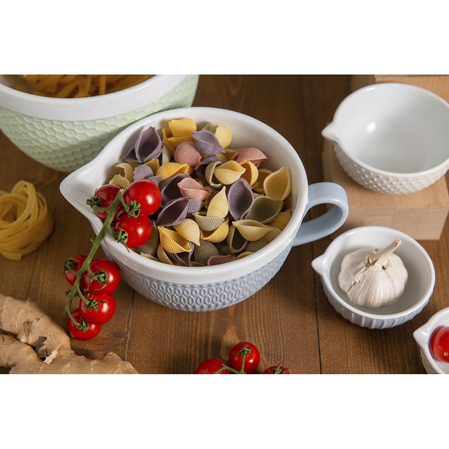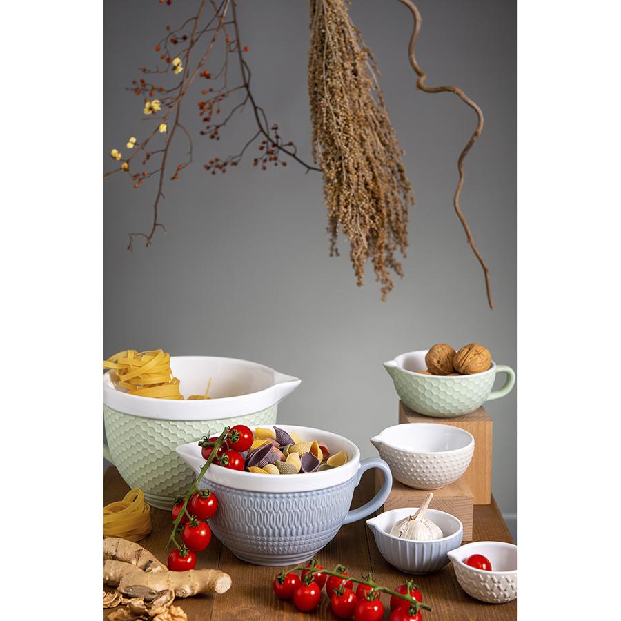 Коллекция посуды Marshmallow привнесет в ваш дом ощущение тепла, поможет создать идеальную атмосферу для приема гостей и уютных семейных застолий. Кувшин из коллекции Marshmallow представляет собой удобную емкость для смешивания ингредиентов, идеально подходит для приготовления соусов и крема для выпечки. Изделие выполнено из высококачественной каменной керамики, покрытой специальной глазурью. Материал экологичный, имеет высокую степень устойчивости к повреждениям и легко моется, что делает эту посуду идеальным выбором для ежедневного использования. Наши продукты прошли испытания на отсутствие в составе свинца и кадмия в соответствии со стандартными тестами FDA. Материал: каменная керамика. Размеры: 20,4х15,2х9,6 см. Объем: 1 л. Цвет: серо-голубой. Кувшин не предназначен для использования металлического венчика и миксера. Желательно использовать венчик с силиконовым прутьями, силиконовую лопатку или деревянные ложки. Посуду рекомендуется очищать от загрязнений в теплой воде с помощью мягкой губки с жидким средством. Допускается мытье в посудомоечной машине.