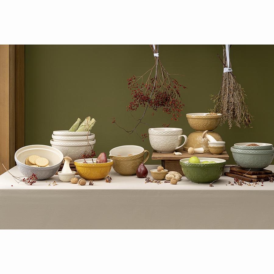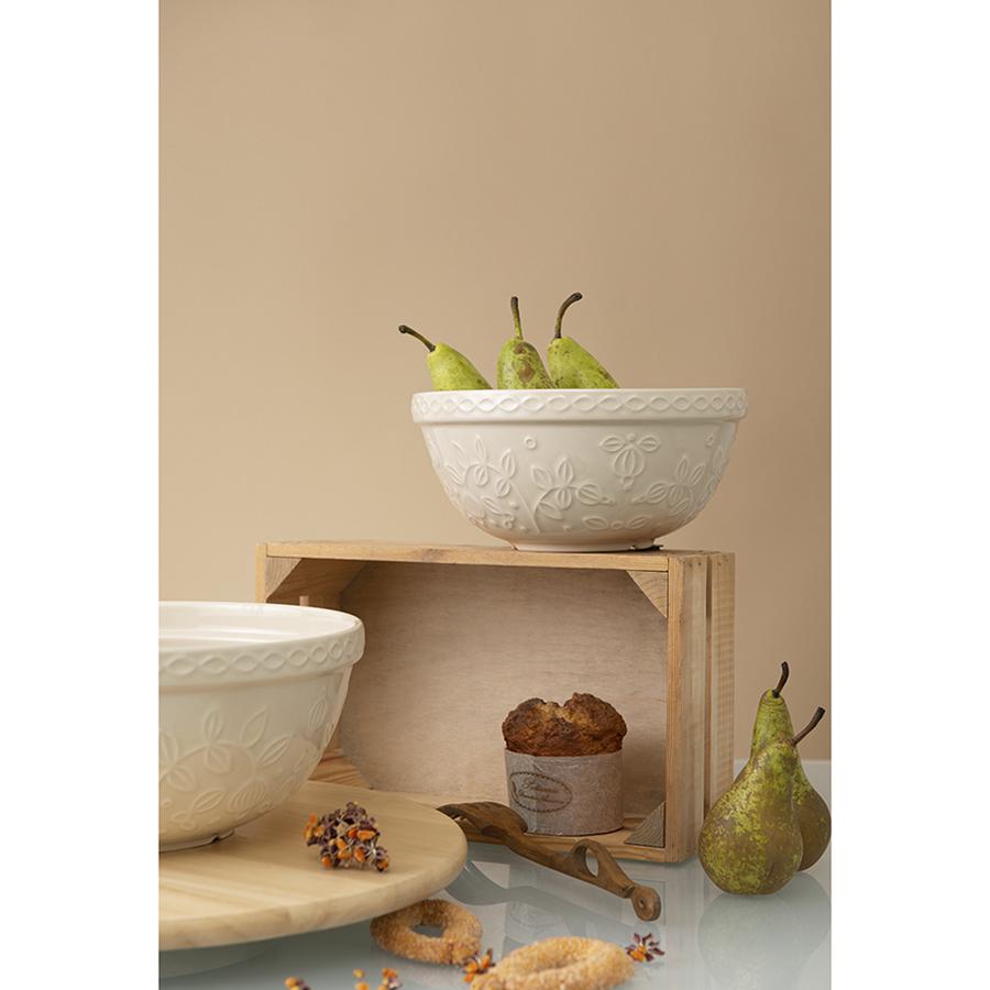 Миска кремого цвета с рельефным узором Ягоды Тайги из коллекции Russian North облегчит процесс приготовления блюд и подойдет для сервировки. Посуда предназначена для замешивания теста, смешивания ингредиентов, а также подачи салатов или фруктов. Изделие украшено рельефным растительным узором в виде стилизованных веточек с ягодами и листьями. Миска, выполненная из прочной каменной керамики и покрытая глянцевой глазурью, устойчива к царапинам и сколам. Объем: 1,5 л. ! Можно использовать в микроволновой печи. ! Можно мыть в посудомоечной машине. ! Можно использовать в духовке при температуре не более 160° C. ! Можно замораживать.