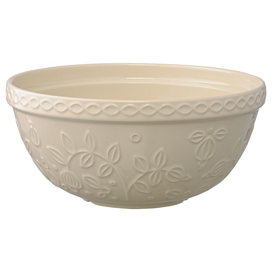 Миска кремового цвета Ягоды Тайги из коллекции Russian North облегчит процесс приготовления блюд, сделает кухонный интерьер более уютным и выигрышно подчеркнет выбранное стилевое решение. Глубокая чаша идеально подойдет для замешивания теста, смешивания ингредиентов, а также для складывания мытых овощей и фруктов и подачи их к столу. Глазурованная поверхность с чуть приглушенным глянцем выглядит благородно и вместе с тем очень практична – не повреждается при использовании и легко отмывается. Рельефный растительный узор в виде стилизованных веточек с ягодами и листьями делает дизайн интересным и запоминающимся. Миска, выполненная из прочной каменной керамики и покрытая глянцевой глазурью, устойчива к сколам и царапинам. Объем: 2,5 л. ! Можно использовать в микроволновой печи. ! Можно мыть в посудомоечной машине. ! Можно использовать в духовке при температуре не более 160° C. ! Можно замораживать.