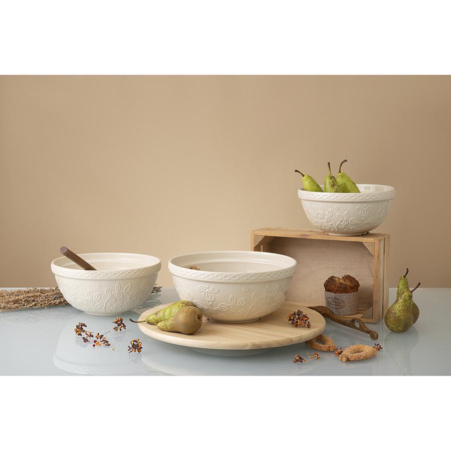 Миска кремового цвета Ягоды Тайги из коллекции Russian North облегчит процесс приготовления блюд, сделает кухонный интерьер более уютным и выигрышно подчеркнет выбранное стилевое решение. Глубокая чаша идеально подойдет для замешивания теста, смешивания ингредиентов, а также для складывания мытых овощей и фруктов и подачи их к столу. Глазурованная поверхность с чуть приглушенным глянцем выглядит благородно и вместе с тем очень практична – не повреждается при использовании и легко отмывается. Рельефный растительный узор в виде стилизованных веточек с ягодами и листьями делает дизайн интересным и запоминающимся. Миска, выполненная из прочной каменной керамики и покрытая глянцевой глазурью, устойчива к сколам и царапинам. Объем: 2,8 л. ! Можно использовать в микроволновой печи. ! Можно мыть в посудомоечной машине. ! Можно использовать в духовке при температуре не более 160° C. ! Можно замораживать.