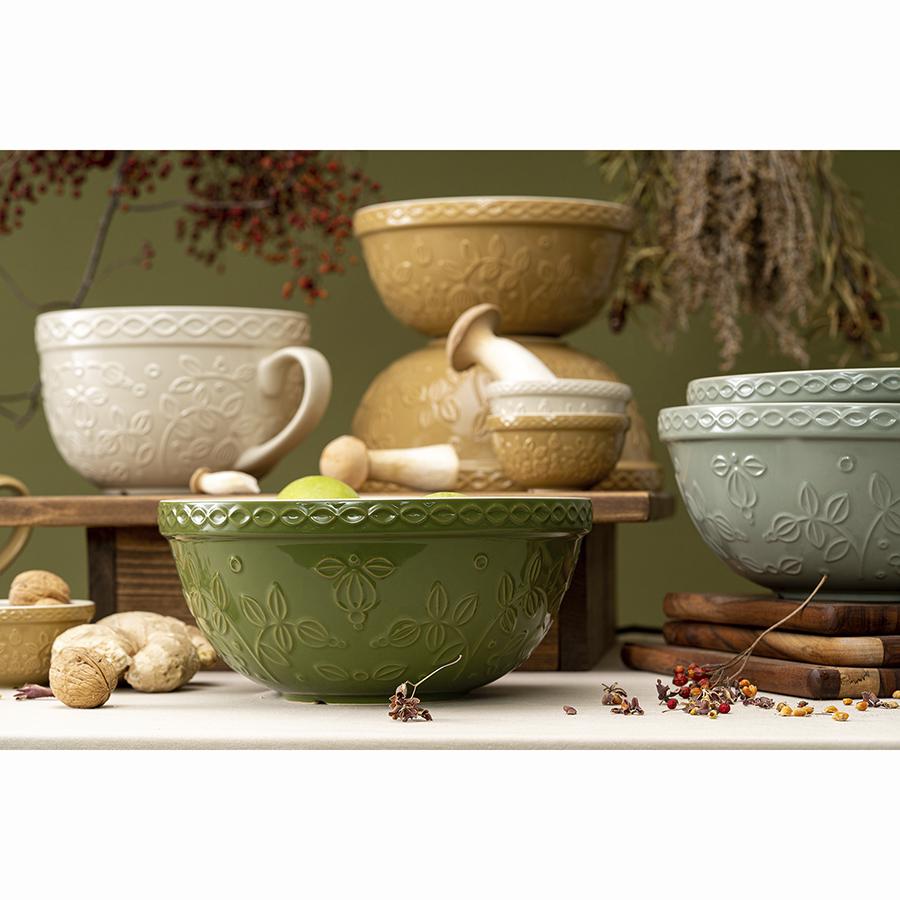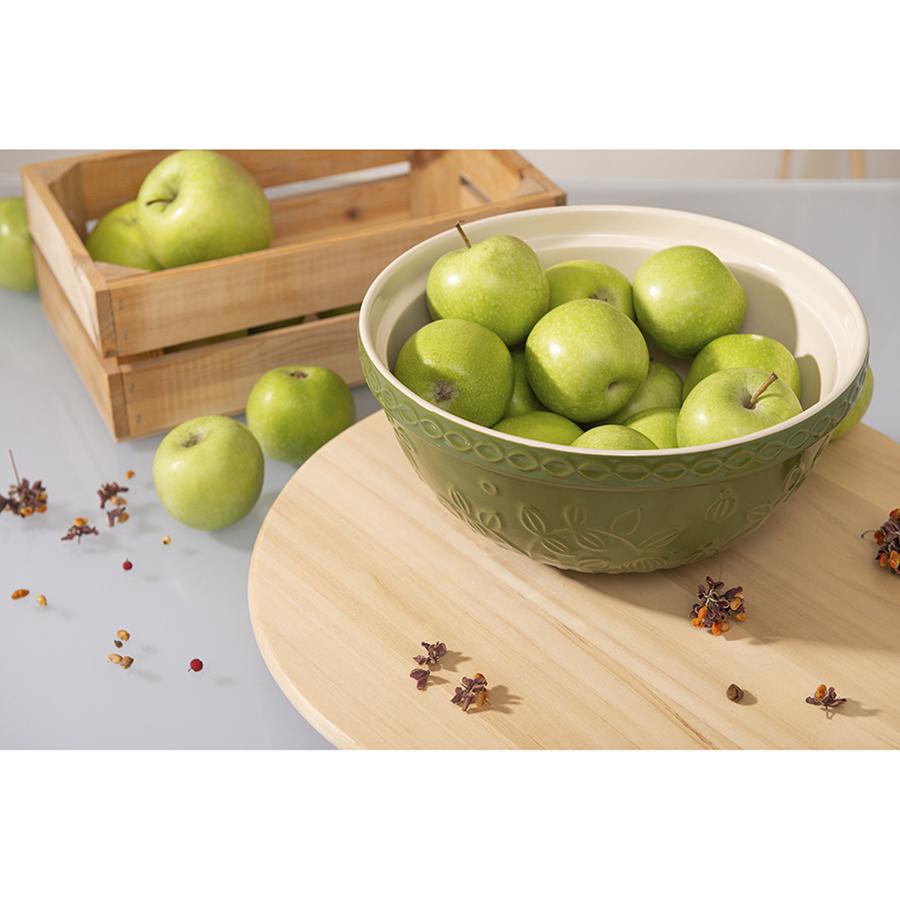 Миска зеленого цвета с рельефным узором Ягоды Тайги из коллекции Russian North облегчит процесс приготовления блюд и подойдет для сервировки. Посуда предназначена для замешивания теста, смешивания ингредиентов, а также подачи салатов или фруктов. Изделие украшено рельефным растительным узором в виде стилизованных веточек с ягодами и листьями. Миска, выполненная из прочной каменной керамики и покрытая глянцевой глазурью, устойчива к царапинам и сколам. Объем: 2,5 л. ! Можно использовать в микроволновой печи. ! Можно мыть в посудомоечной машине. ! Можно использовать в духовке при температуре не более 160° C. ! Можно замораживать.