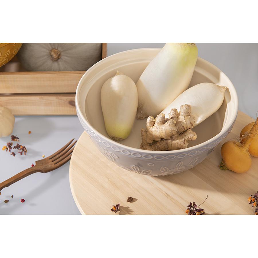 Миска серого цвета с рельефным узором Ягоды Тайги из коллекции Russian North облегчит процесс приготовления блюд и подойдет для сервировки. Посуда предназначена для замешивания теста, смешивания ингредиентов, а также подачи салатов или фруктов. Изделие украшено рельефным растительным узором в виде стилизованных веточек с ягодами и листьями. Миска, выполненная из прочной каменной керамики и покрытая глянцевой глазурью, устойчива к царапинам и сколам. Объем: 2,8 л. ! Можно использовать в микроволновой печи. ! Можно мыть в посудомоечной машине. ! Можно использовать в духовке при температуре не более 160° C. ! Можно замораживать.