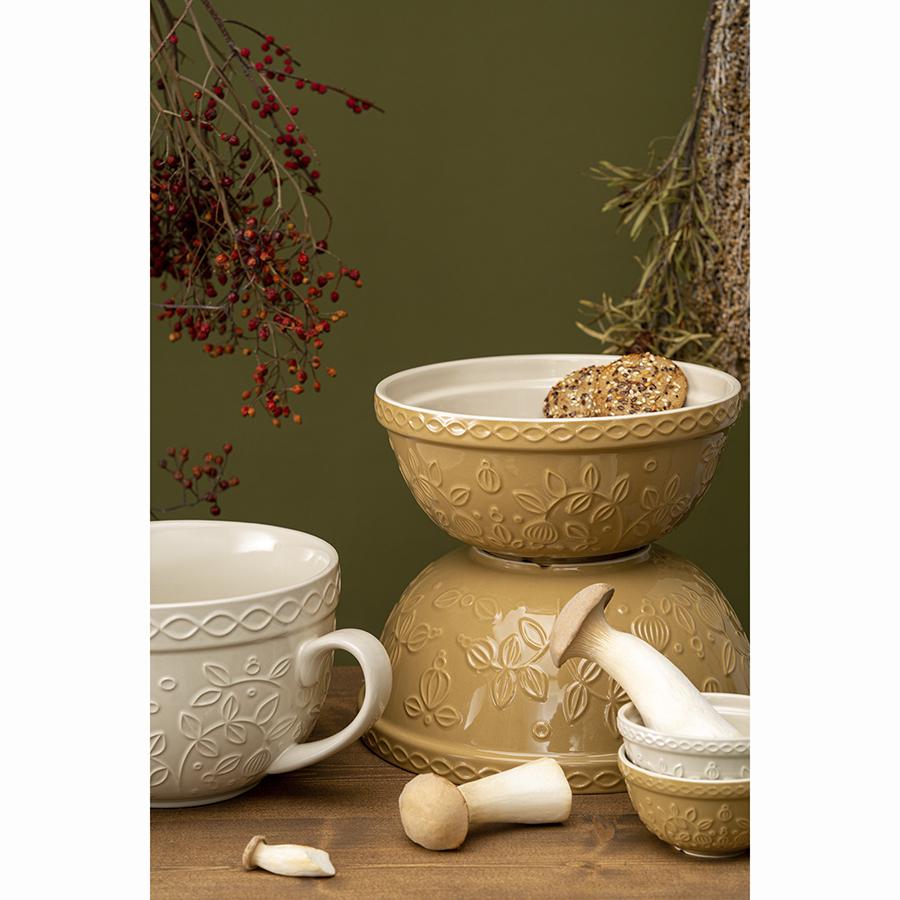 Миска бежевого цвета с рельефным узором Ягоды Тайги из коллекции Russian North облегчит процесс приготовления блюд и подойдет для сервировки. Посуда предназначена для замешивания теста, смешивания ингредиентов, а также подачи салатов или фруктов. Изделие украшено рельефным растительным узором в виде стилизованных веточек с ягодами и листьями. Миска, выполненная из прочной каменной керамики и покрытая глянцевой глазурью, устойчива к царапинам и сколам. Объем: 1,5 л. ! Можно использовать в микроволновой печи. ! Можно мыть в посудомоечной машине. ! Можно использовать в духовке при температуре не более 160° C. ! Можно замораживать.