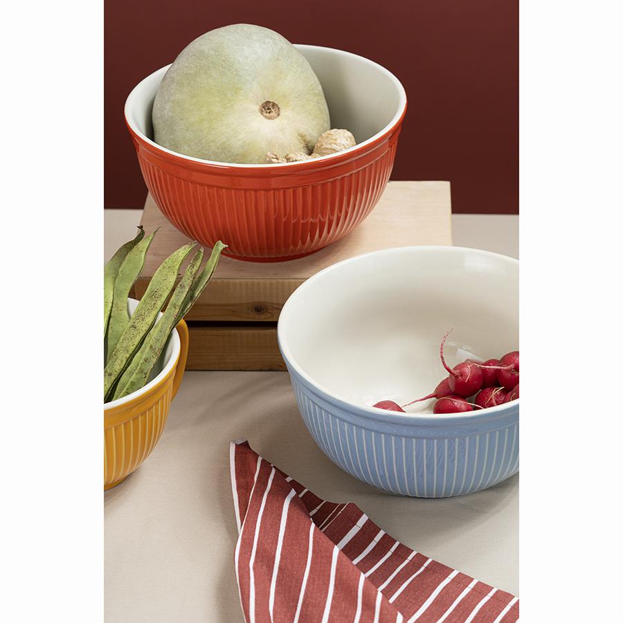 Миска из коллекции Soft Ripples пригодится при замешивании теста, смешивании ингредиентов, подойдет для складывания продуктов во время готовки или подачи к столу фруктов. Емкость из прочной, устойчивой к износу каменной керамики сохраняет привлекательный вид на протяжении всего срока эксплуатации. Материал является экологичным, не боится температурных перепадов, не впитывает запахи и загрязнения. Глазурованное покрытие легко очищается, обеспечивает изделию декоративность и защищает от внешних воздействий. Рельефный узор на внешней поверхности стенок и интересное цветовое сочетание делают дизайн оригинальным. Наши продукты прошли испытания на отсутствие в составе свинца и кадмия в соответствии со стандартными тестами FDA. Материал: каменная керамика. Размеры: 26х26х13,5 см. Объем: 3,9 л. Цвет: красный. Допускается мытье в посудомоечной машине, заморозка, использование в микроволновой печи и духовке при температуре не выше 230 °C.
