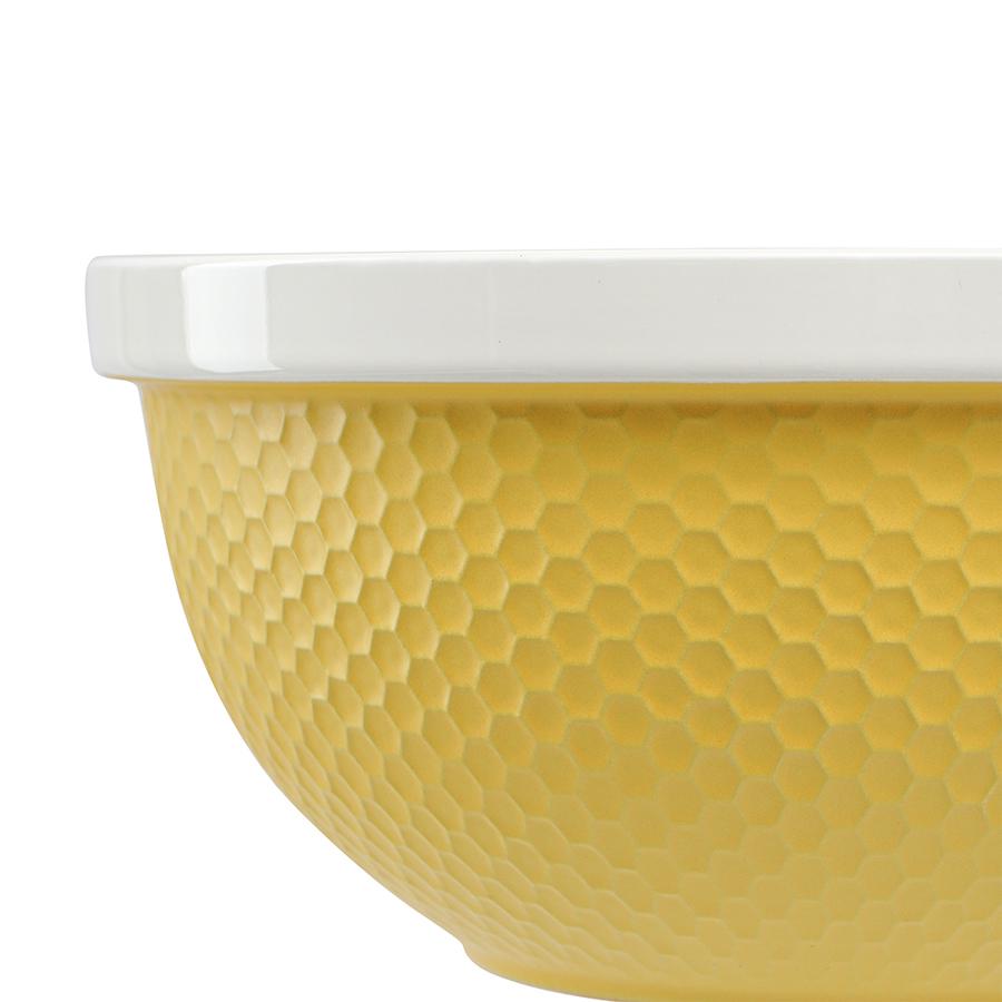 Коллекция посуды Marshmallow привнесет в ваш дом ощущение тепла, поможет создать идеальную атмосферу для приема гостей и уютных семейных застолий. Миска из коллекции Marshmallow идеально подходит для смешивания ингредиентов во время приготовления различных блюд, взбивания крема, может использоваться как салатник. Изделие выполнено из высококачественной каменной керамики, покрытой специальной глазурью. Материал экологичный, имеет высокую степень устойчивости к повреждениям и легко моется, что делает эту посуду идеальным выбором для ежедневного использования. Наши продукты прошли испытания на отсутствие в составе свинца и кадмия в соответствии со стандартными тестами FDA. Материал: каменная керамика. Размеры: 27,9х27,9х13 см. Объем: 4,3 л. Цвет: лимонный. Для взбивания и смешивания рекомендуется использовать венчик с силиконовыми прутьями, силиконовую лопатку или деревянную ложку. Запрещается применение металлических приборов и миксера. Посуду можно мыть в посудомоечной машине, использовать в микроволновой печи, духовке при температуре не более 230° C и подвергать заморозке.