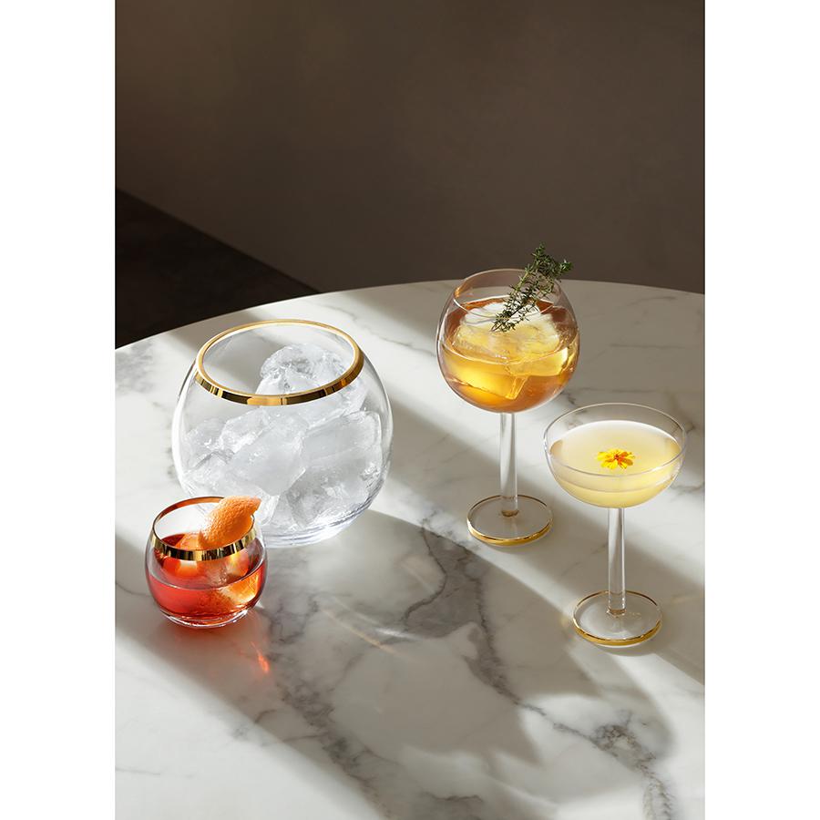 Креманки Luca станут не просто функциональным элементом сервировки, но и украшением любого стола. Изделия из этой коллекции выглядят стильно и эффектно – при каждом движении, свет играет на поверхности стекла, а золотистые акценты усиливают его сияние. Креманки идеально подойдут для подачи шампанского и коктейлей. Особенности и преимущества: - Выдувное стекло прочнее, легче и прозрачнее обычного, благодаря чему изделия из него являются практичными, долговечными и имеют презентабельный вид. - Креманки с большой округлой чашей и утолщенной трубчатой ножкой смотрятся необычно и удобно ложатся в руку. - Плавность линий и нанесенный вручную золотистый декор делают посуду из этой коллекции настоящим украшением любой сервировки. Luca – коллекция посуды необычной округлой формы с минималистичным декором в виде золотистой каймы, выполненная из выдувного стекла ручным способом. Важно! Поскольку изделия изготавливаются вручную, их размеры могут незначительно отличаться и допускается наличие пузырьков в толще стекла: круглые < 3 мм, овальные < 5 мм и их небольшие скопления в виде пены. Также возможно наличие прожилок (видимых нитей) на стекле менее 50% длины окружности любого предмета. Все это не брак, а допустимые индивидуальные особенности товаров, произведенных ручным способом. Материал: выдувное стекло. Объем: 200 мл. Размеры: 10,5х10,5х15,5 см. Количество в наборе: 2 шт. Креманки рекомендуется мыть вручную в теплой мыльной воде, после чего протирать сухой мягкой тканью.