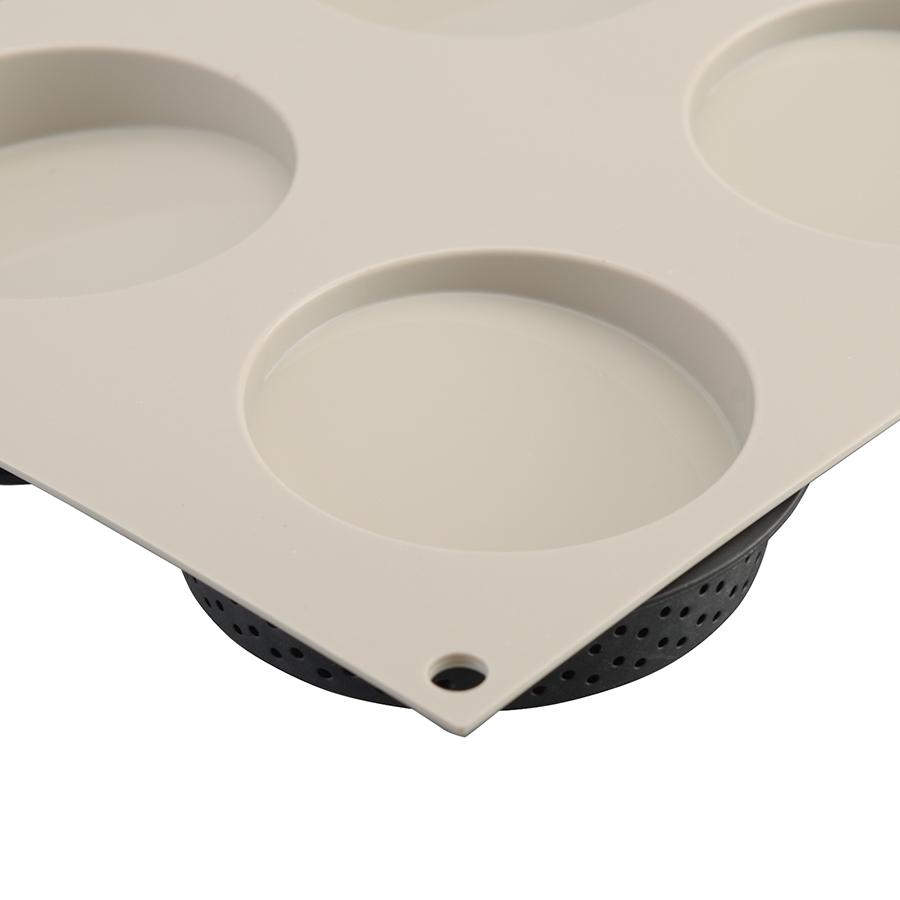 Форма поможет удивить гостей оригинальными домашними пирожными. Набор включает 6 перфорированных пластиковых формочек с антипригарным покрытием для песочной основы и силиконовую форму с шестью секциями для украшения. Форма выдерживает температуру от - 60 до + 230 °С. Силикон не содержит вредный бисфенол-А и соответствует европейским стандартам качества. Он не имеет запаха и не дымится во время готовки. Материал гибкий, прочный, устойчивый к перепадам температур. Форма выдерживает до 3000 использований. Перед использованием необходимо смазать изделие маслом. Размеры пластиковых кругов-держателей (ВхШхГ): 1,8х9,6х9,6 см Размеры силиконовой формы (ВхШхГ): 1,8х17,4х29,9 см Диаметр ячейки - 8 см. Объем ячейки: 46 мл. При чистке не используйте острые предметы. Можно мыть в посудомоечной машине при условии, что не используются агрессивные средства с осветляющим или ароматическим эффектом, это приводит к появлению на форме белых пятен и налета. Контакт с такими продуктами, как кокосовое масло и томаты, приводит к появлению пятен, которые легко устранить, положив форму на час в духовку, разогретую на 200-220 °С. Для удаления жира достаточно прокипятить около 10 минут. Подходит для хранения в холодильнике и использования в микроволновой печи. Производство: Италия