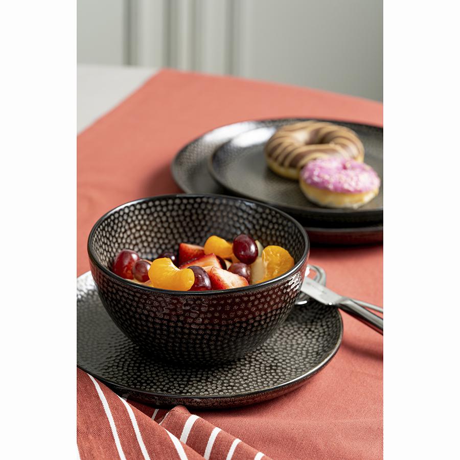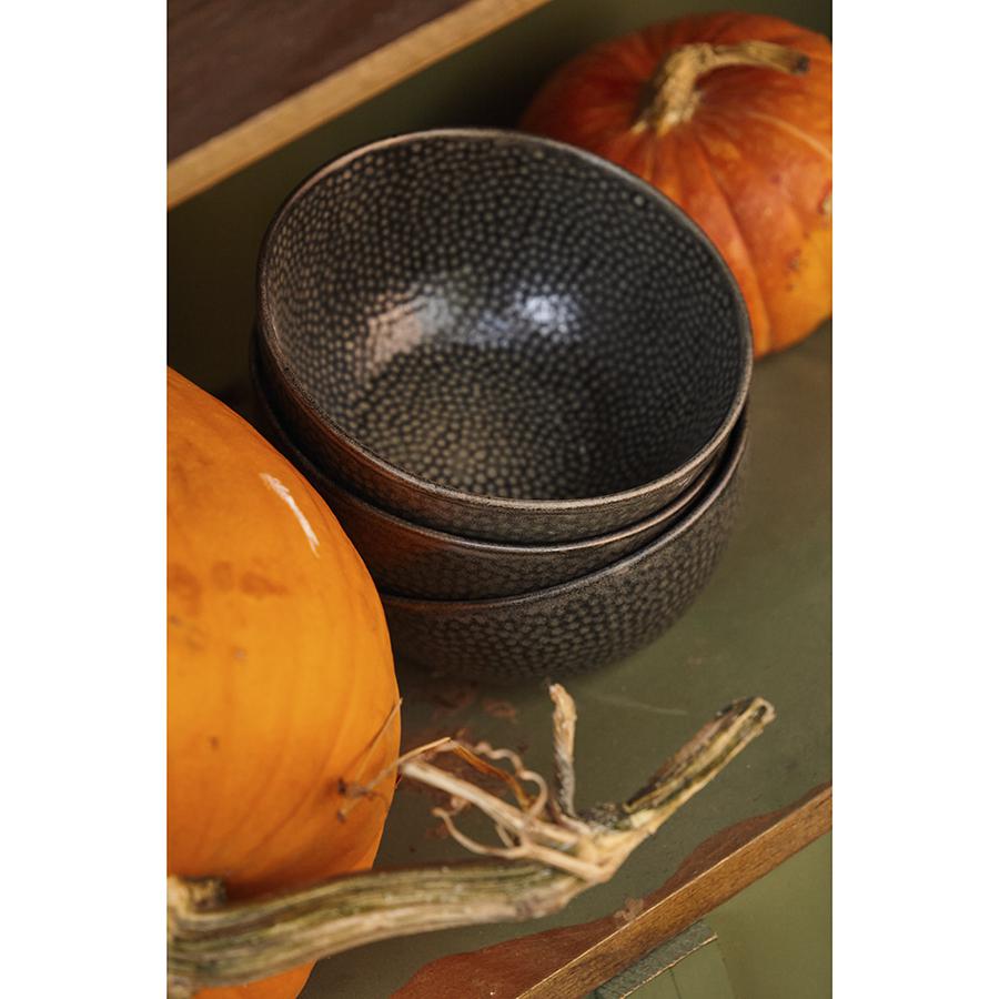 Для создания коллекции Dots с неповторимой фактурой и цветовым решением опытные мастера использовали метод реактивной глазуровки, когда на поверхность посуды наносится несколько слоев специальной глазури. Благодаря такому способу обработки каждое изделие имеет свой неповторимый оттенок и уникальный вид. Чаши из коллекции Dots помогут сделать акцент на модной сервировке. Полуматовая глазурь эффектно подчеркивает необычный узор, покрывающий всю поверхность посуды, что придает ей особый шарм. Помимо декоративных свойств такое покрытие обеспечивает дополнительную защиту от внешних воздействий. Изделия из каменной керамики обладают прекрасными эксплуатационными характеристиками. Материал является экологичным, ударопрочным и устойчивым к температурным перепадам. Благодаря этому емкости можно ставить в морозильную камеру и использовать для разогрева еды в микроволновой печи. Наши продукты прошли испытания на отсутствие в составе свинца и кадмия в соответствии со стандартными тестами FDA. Материал: каменная керамика. Размеры: 15,5х15,5х8 см. Объем: 800 мл. Цвет: черный. Количество предметов в наборе: 2 шт. Посуду рекомендуется очищать от загрязнений в теплой воде с помощью мягкой губки с жидким средством. Допускается мытье в посудомоечной машине, использование в СВЧ и заморозка.