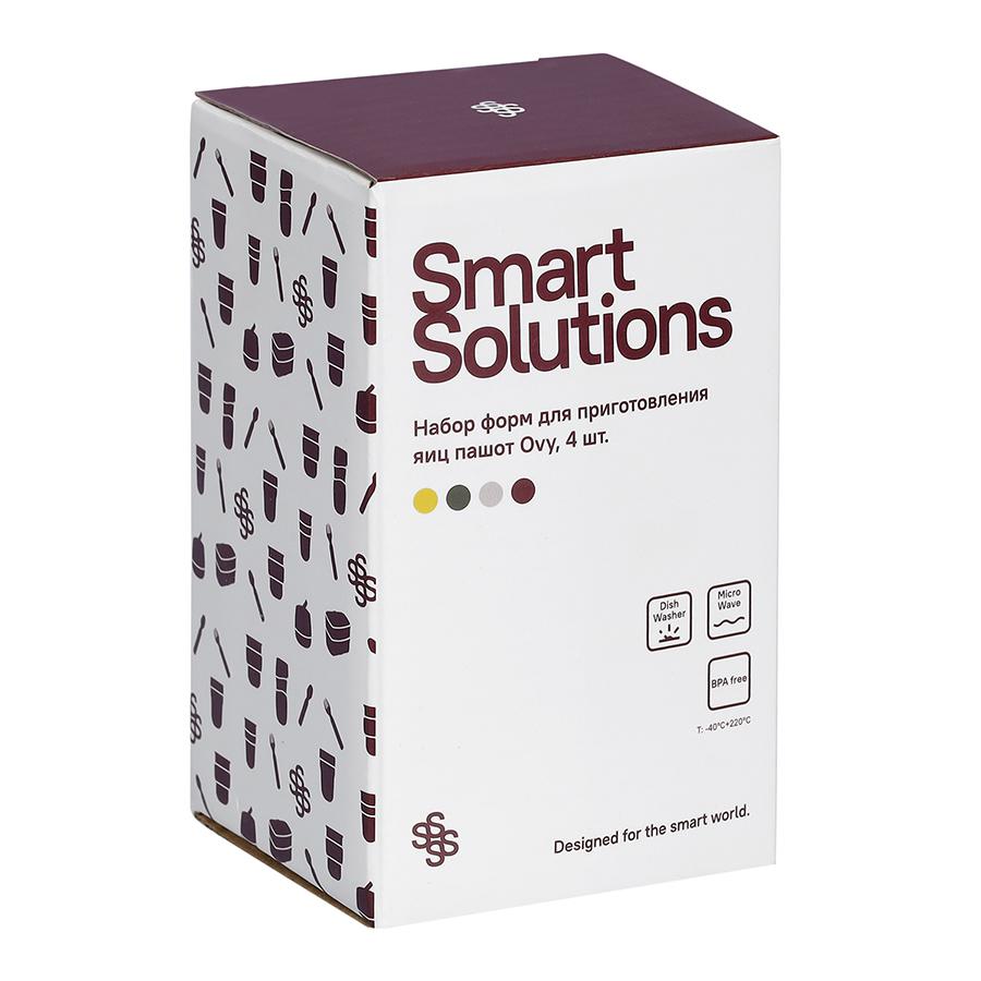 Набор форм Ovy от бренда Smart Solutions – простой и удобный способ приготовить яйца пашот идеальной консистенции. Особенности и преимущества: - Изделия из силикона не содержат в составе вредных соединений, таких как бисфенол-А, устойчивы к воздействию высоких температур. - Формы имеют привлекательный цветной дизайн и удобно складываются для компактного хранения. Для приготовления яиц пашот на водяной бане необходимо: 1. Вскипятить воду в кастрюле. 2. Внутреннюю поверхность формы смазать растительным маслом и немного посолить. 3. Влить в форму яйцо. 4. Опустить форму в кипящую воду на 1,5-3 минуты, в зависимости от интенсивности нагревания. 5. С помощью ложки извлечь готовое яйцо из формы. Материал: силикон. Размеры одной формы: 9х9х10 см. Вес одной формы: 29 г. Количество предметов в наборе: 4 шт. Допускается использование в температурном диапазоне от -40? до +220?. Можно мыть в посудомоечной машине и нагревать в микроволновой печи.