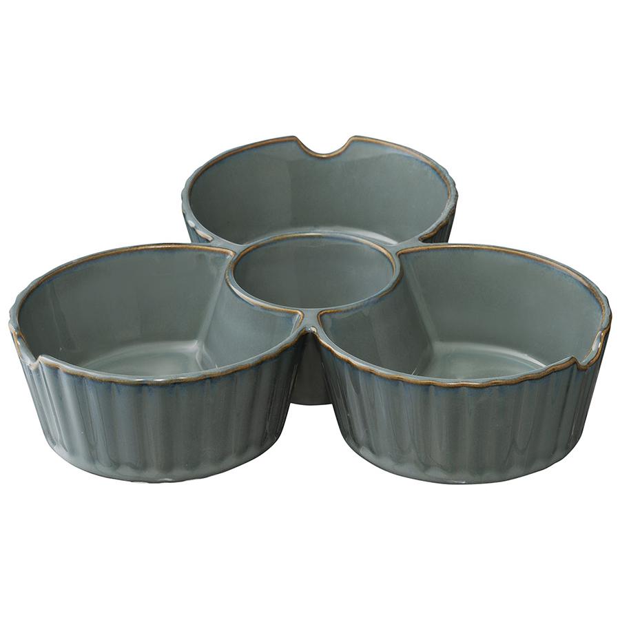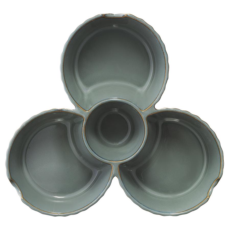 Менажница темно-серого цвета из коллекции Kitchen Spirit – оригинальная и практичная посуда из фарфора, которая непременно понравится поклонникам стилей рустик и кантри. Фактурный декор в сочетании с глянцевой глазурью станут изюминкой любой сервировки и помогут создать теплую атмосферу за столом. Емкость из экологичного и практичного материала отличается прочностью, не меняет вкус и запах продуктов, легко очищается от загрязнений в теплой мыльной воде. Все предметы из коллекции Kitchen Spirit отлично комбинируются между собой. Отличительной особенностью линейки является покрытие из реактивной глазури, которое создает на поверхности посуды уникальные узоры. Во время обжига фарфора возникает химическая реакция, обычно плавление или окисление, в результате которой и получается нужный рисунок. Благодаря такой обработке найти два идентичных изделия практически невозможно. Именно за счет своей индивидуальности и неповторимости узора столовая посуда и аксессуары для сервировки с реактивной глазурью стали трендом в мире дизайна и декора. ! Важно, что возможное неравномерное окрашивание, “подтеки” или “наплывы” глазури не являются браком. Размеры: 21х22,5х5 см. Материал: фарфор. ! Можно использовать в микроволновой печи ! Можно мыть в посудомоечной машине ! Можно использовать в духовке при температуре не более 200° C ! Можно замораживать