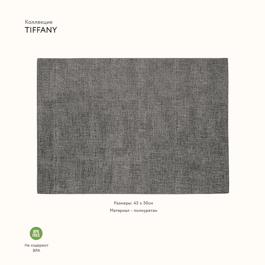 Подстановочная салфетка Tiffany – стильный аксессуар, который поможет красиво накрыть на стол, обозначить места для каждого домочадца или гостя, а также защитить поверхность мебели от загрязнений и повреждений. Изделие из полиуретана обладает прочностью, устойчивостью к воздействию влаги и высоких температур, долго сохраняет привлекательный вид и легко моется обычной водой. Салфетка может использоваться с двух сторон. Материал: полиуретан. Размеры: 43х30 см. Цвет: темно-серый. Рекомендуется очищать вручную в теплой мыльной воде.