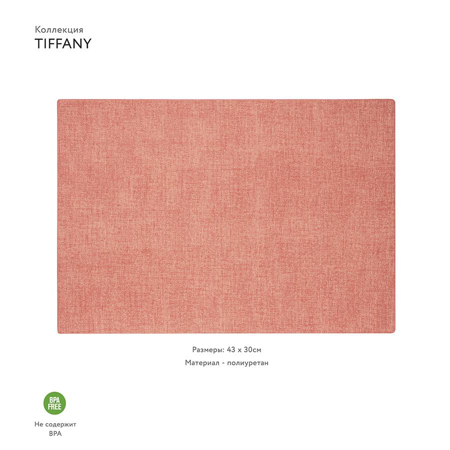 Подстановочная салфетка Tiffany – стильный аксессуар, который поможет красиво накрыть на стол, обозначить места для каждого домочадца или гостя, а также защитить поверхность мебели от загрязнений и повреждений. Изделие из полиуретана обладает прочностью, устойчивостью к воздействию влаги и высоких температур, долго сохраняет привлекательный вид и легко моется обычной водой. Салфетка может использоваться с двух сторон. Материал: полиуретан. Размеры: 43х30х0,2 см. Цвет: коралловый. Рекомендуется очищать вручную в теплой мыльной воде.