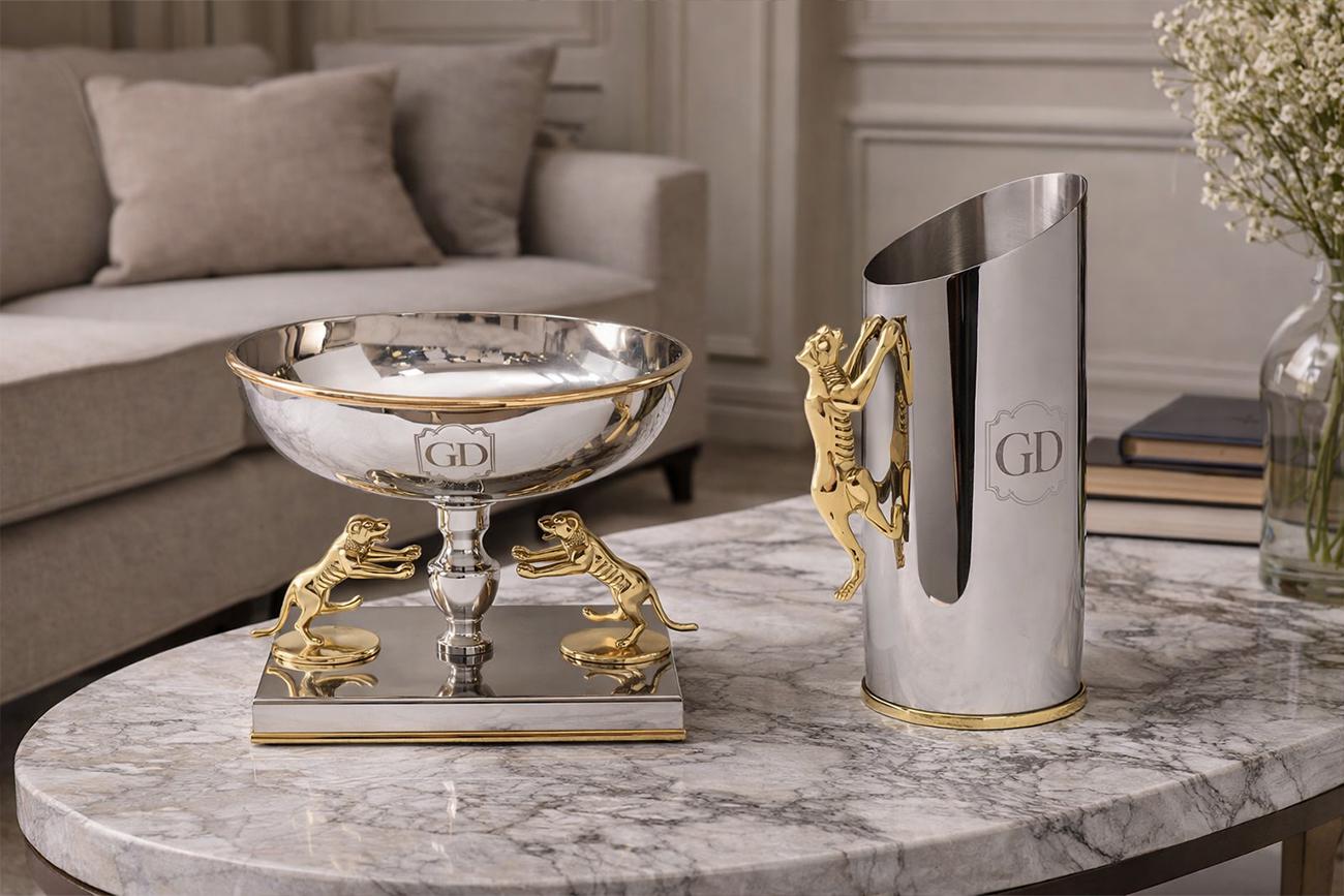 Ваза Garda Decor 95IM-16542S Чаша "Леопарды" н/ж цвет хром 25*19*20см арт. 95IM-16542S