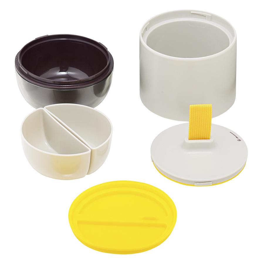 Ланч-бокс Meals от бренда Smart Solutions – стильный, удобный и практичный контейнер для еды с собой. Особенности и преимущества: - Конструкция ланч-бокса состоит из двух частей, надежно соединенных между собой. Верхний контейнер идеально подходит для салатов, первых и вторых блюд. Нижний поделен на два отсека, которые можно использовать под фрукты, мюсли и снеки. - Специальный ободок из силикона обеспечивает плотное прилегание крышки и защиту от протекания. Однако не рекомендуется переворачивать или трясти контейнер. - Благодаря термостойким свойствам емкости можно греть в СВЧ и хранить в холодильнике. - В составе материалов отсутствуют вредные для здоровья соединения, в том числе бисфенол-А. - Ланч-бокс легко разбирается на составляющие части для тщательной очистки. - Перед первым применением рекомендуем промыть все части контейнера в горячей воде. Подготовка контейнера к использованию: - Открутить крышку контейнера против часовой стрелки. - Промыть контейнер и все его части в горячей воде. - Немного разработать руками уплотнительную резинку на крышке контейнера. - Несколько раз повторить процесс открывания-закрывания крышки контейнера. - Положить в контейнер любимое блюдо и закрыть крышку до характерного щелчка. - Стрелка на крышке указывает направление закрывания контейнера. Если все сделано правильно, крышка будет плотно прилегать и при этом легко открываться. И после такой подготовки ланч-бокс будет 100% герметичен. Материалы: АБС-пластик, силикон, полипропилен, нейлон. Высота: 15 см. Диаметр: 12 см. Объем: 800 мл. Цвет: светло-серый/темно-сливовый. Допускается использование в температурном диапазоне от -30? до +80?. Можно мыть в посудомоечной машине и нагревать в микроволновой печи (максимально 700 Вт).