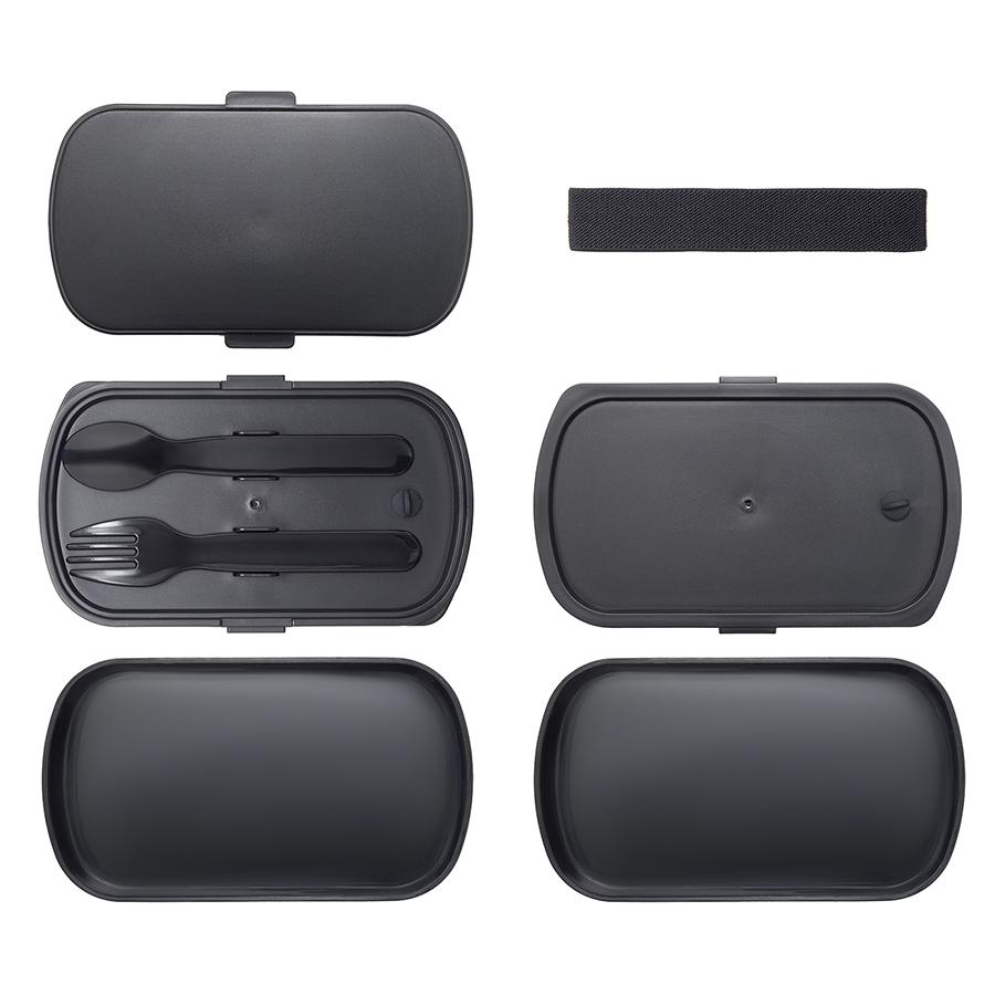 Емкости для хранения ЯЯЯ Ланч-бокс с приборами food time, 1 л, черный арт. SS-LBDL-PP-BLK-1