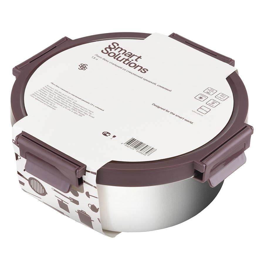 Емкости для хранения ЯЯЯ Ланч-бокс стальной со стеклянной крышкой, 1,5 л, сливовый арт. SFE-SS-LB-ST-GLS-PL-1.5