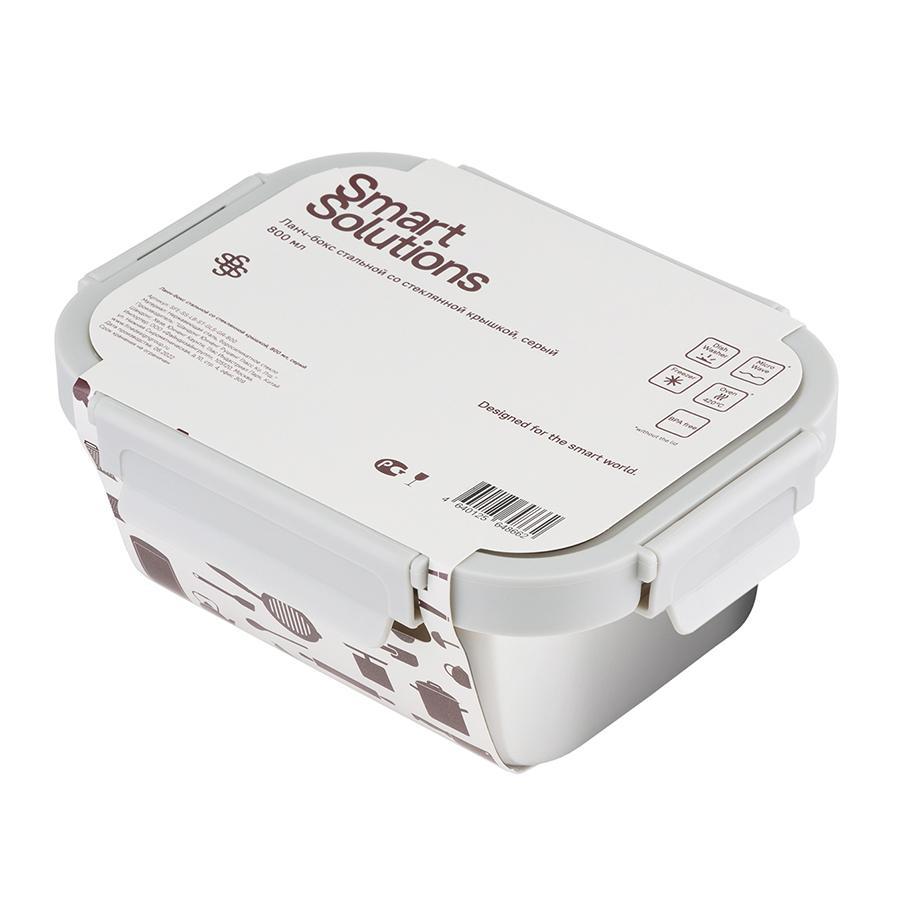 Емкости для хранения ЯЯЯ Ланч-бокс стальной со стеклянной крышкой, 800 мл, серый арт. SFE-SS-LB-ST-GLS-GR-800