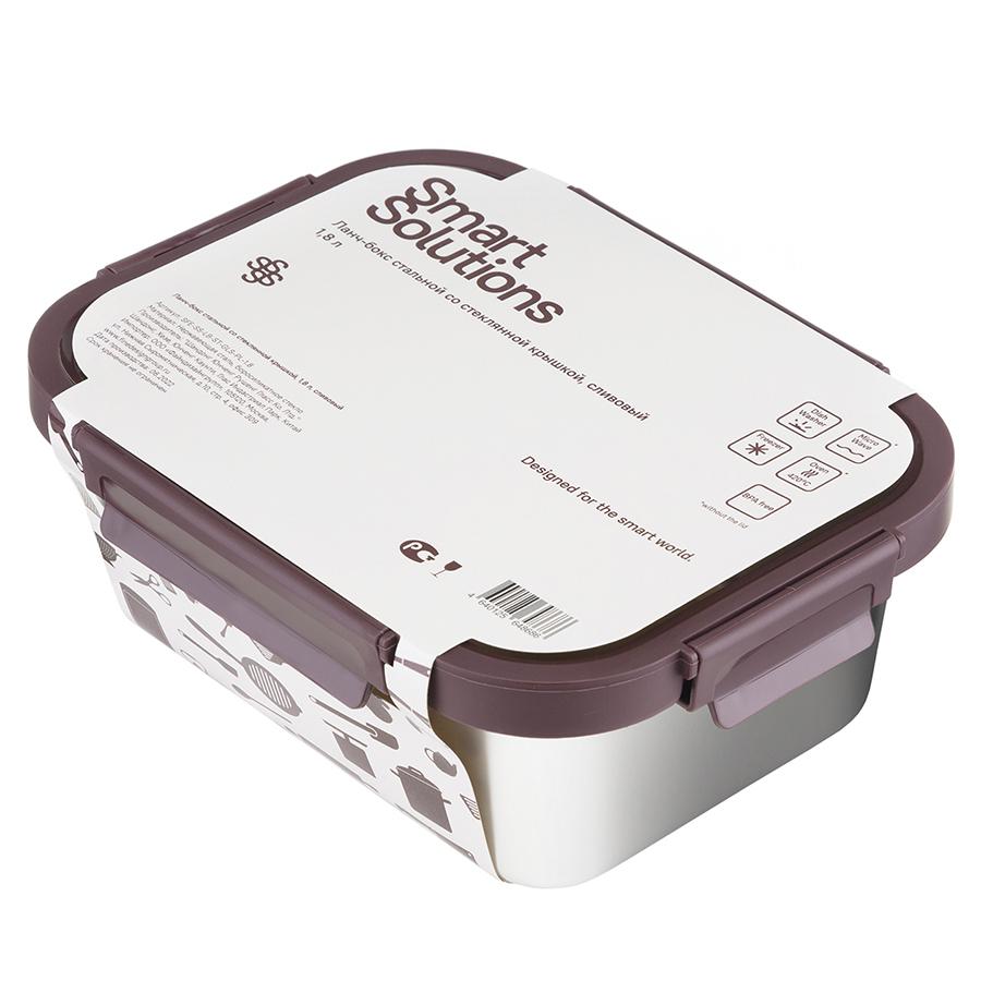 Ланч-бокс из нержавеющей стали – стильная, практичная и надежная посуда для хранения и переноски еды. Особенности и преимущества: - Емкость из нержавеющей стали типа 18/10 не боится коррозии, не впитывает запахи и загрязнения, долго сохраняет привлекательный вид. - Крышка из прочного боросиликатного стекла легко выдерживает перепады температуры, имеет специальные фиксаторы, которые помогают избежать протечек. - Наличие вентиляционного отверстия позволяет выпустить из контейнера лишний воздух или горячий пар, что повышает герметичность и улучшает условия хранения продуктов. - Благодаря компактным размерам ланч-бокс не занимает много места в сумке или рюкзаке. Материал: нержавеющая сталь 18/10, боросиликатное стекло, пластик. Размеры: 23,5х18х8,8 см. Объем: 1,8 л. Цвет: сливовый. Ланч-бокс можно мыть вручную и в посудомоечной машине (без крышки). Запрещается использование абразивов и агрессивной бытовой химии. Известковый налет с поверхности рекомендуется удалять при помощи раствора теплой воды с белым уксусом или пищевой содой, после чего контейнер требуется вытереть насухо. Для разогрева еды в микроволновке или духовке при температуре не более 420 °C необходимо снимать крышку, чтобы избежать деформации. Не допустим нагрев на открытом огне. Можно подвергать заморозке.