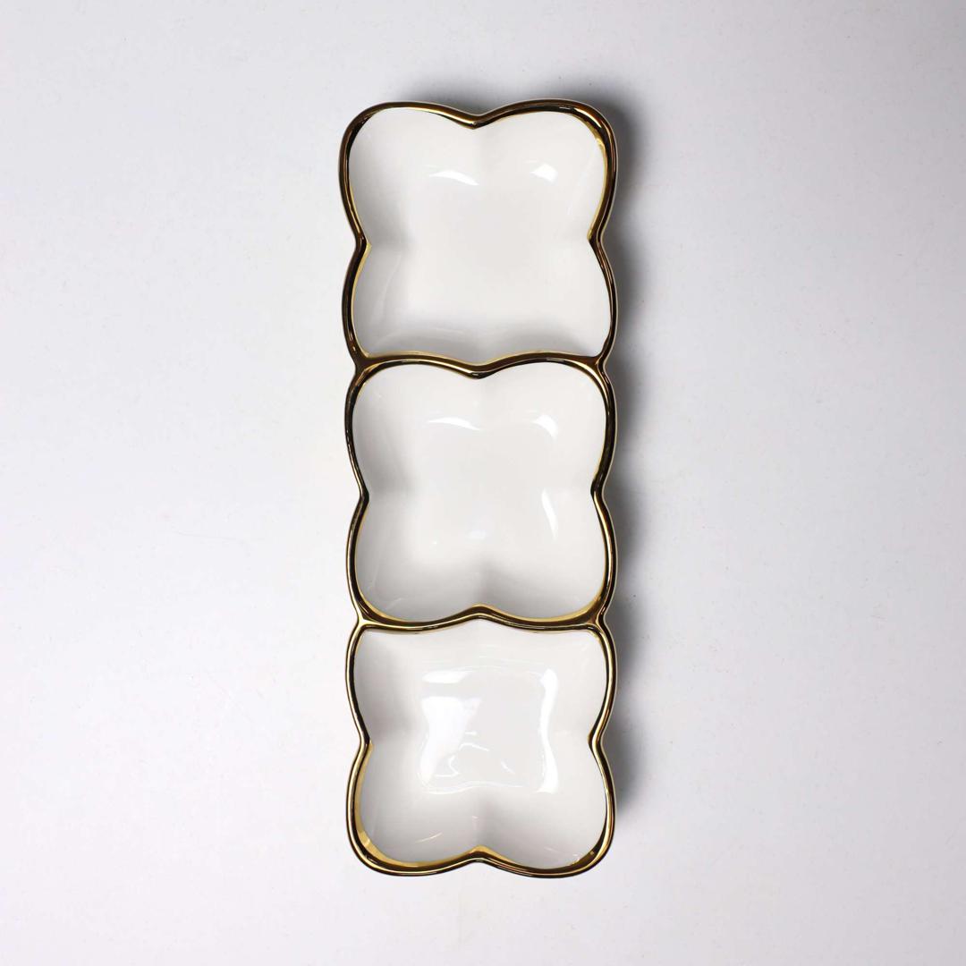 Набор посуды AksHome Менажница MOONSHINE, 3 ячейки, керамика, белый+золото арт. ZN-381622