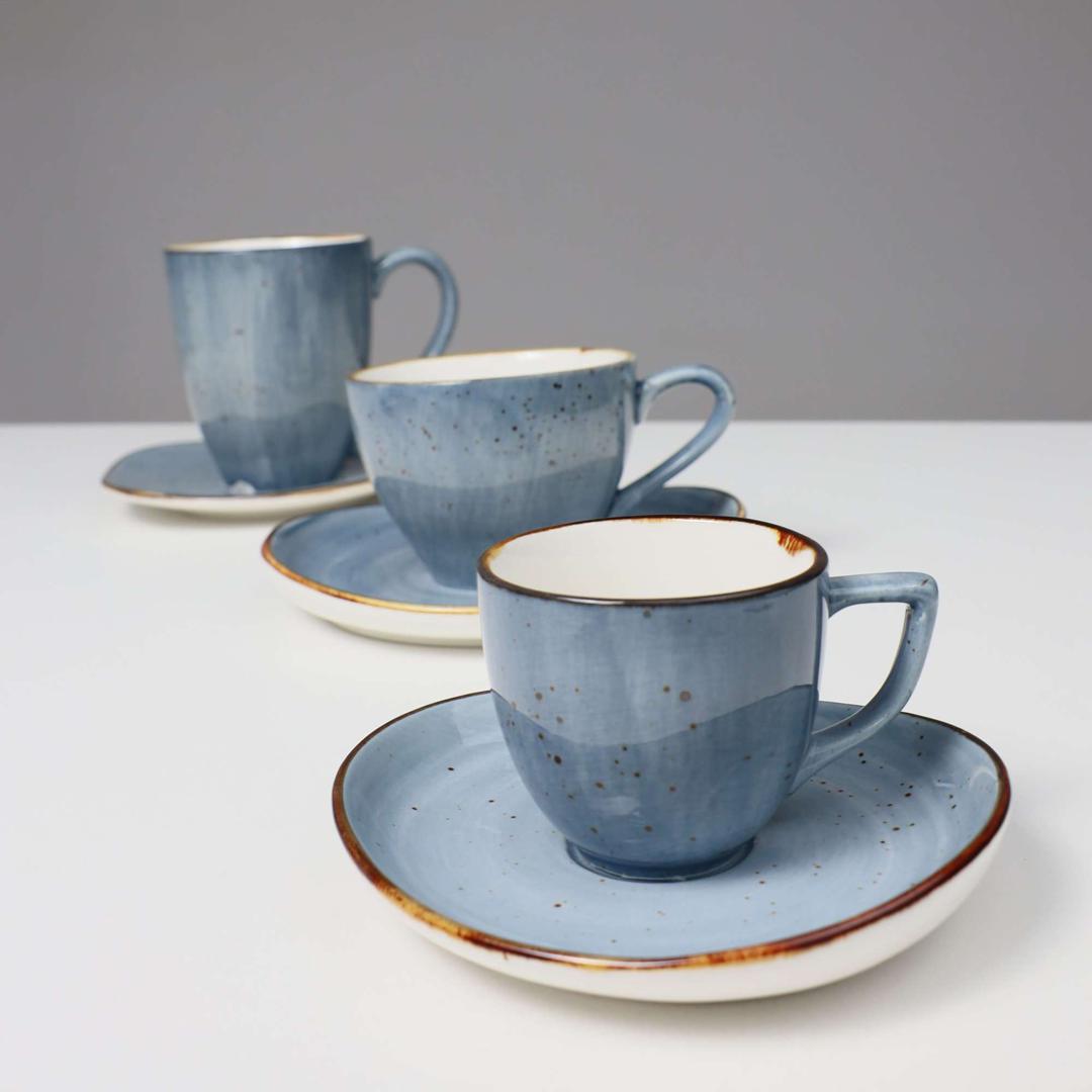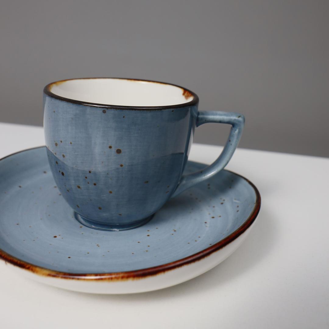 Набор посуды AksHome Кофейная чашка с блюдцем VITAL, фарфор, синий, 80мл арт. ZN-381625