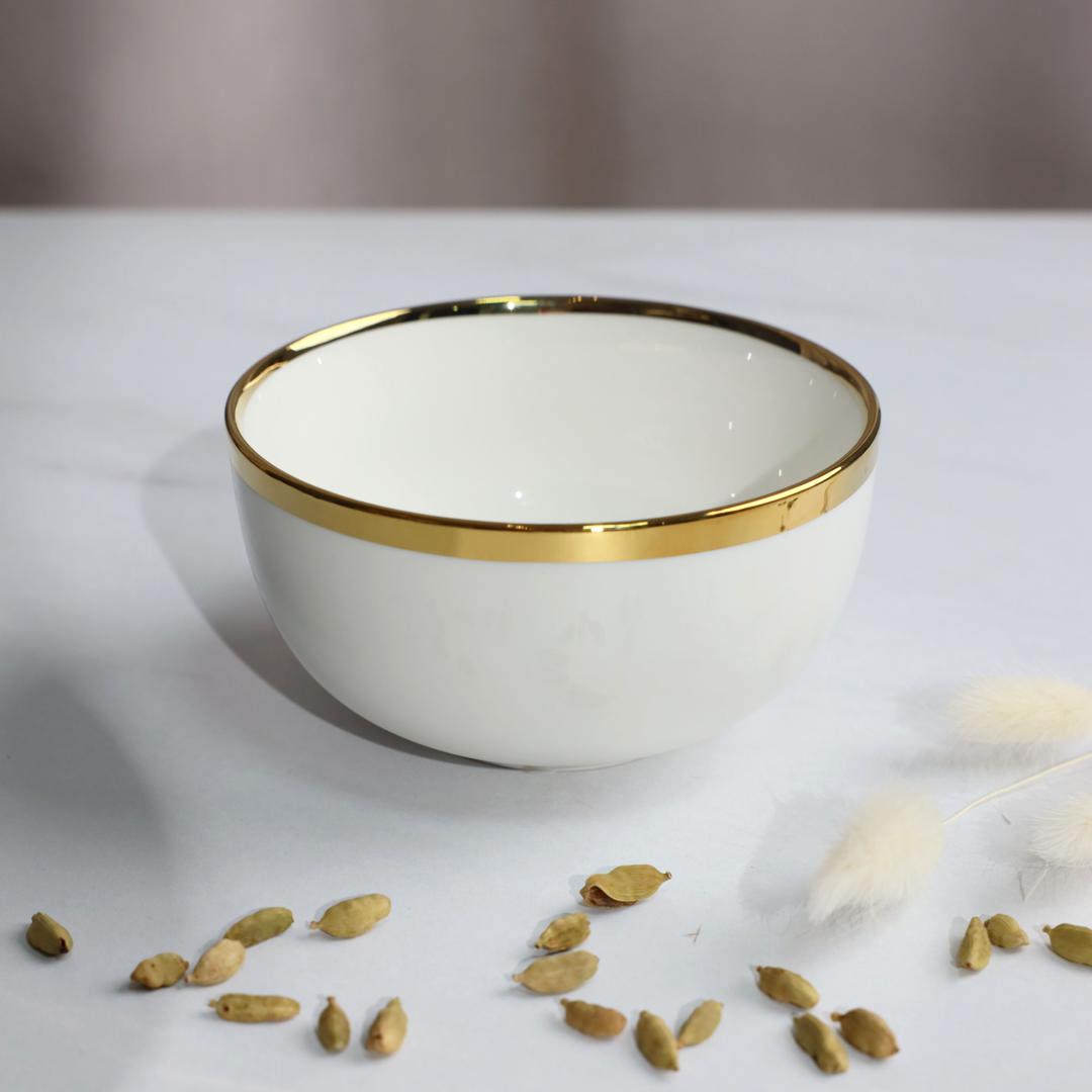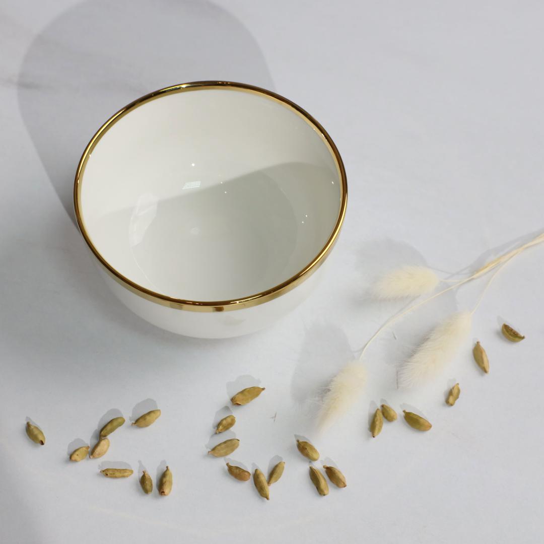 Наименование: Тарелка глубокая MOONSHINE, керамика, белый+золото, 13*6,8см