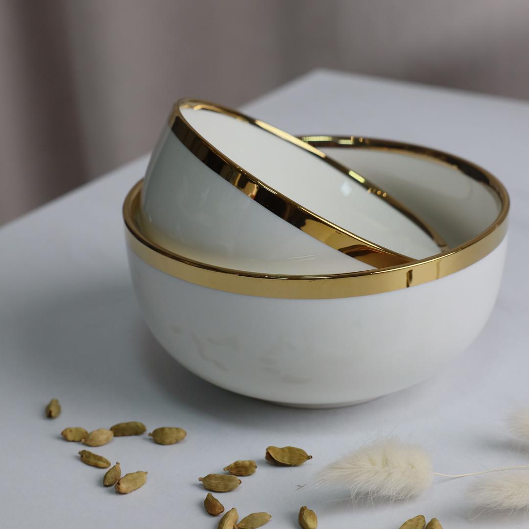 Набор посуды AksHome Тарелка глубокая MOONSHINE, керамика, белый+золото, 13*6,8см арт. ZN-381627