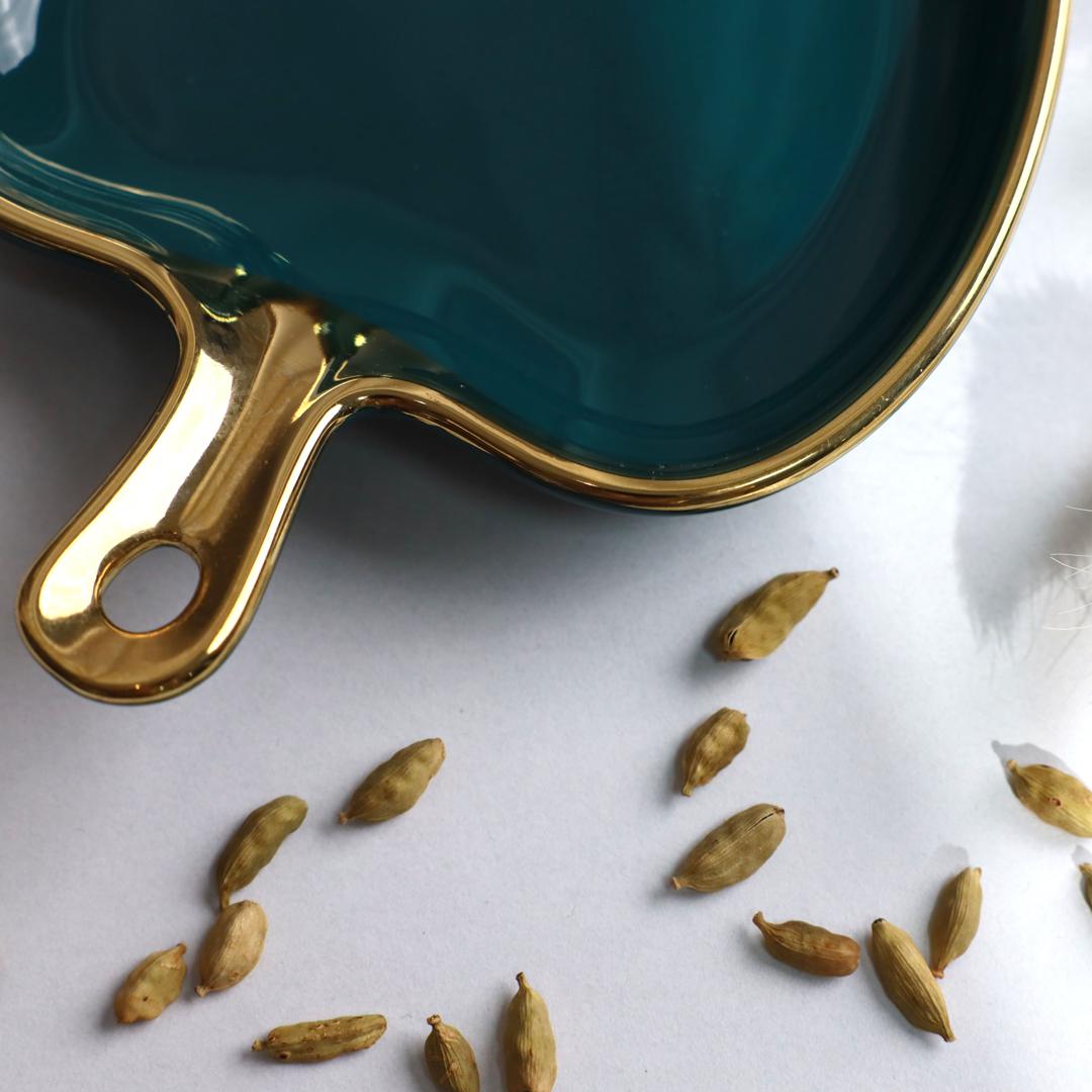 Набор посуды AksHome Блюдо фигурное MOONSHINE, керамика, темно-зеленый+золото, 18см арт. ZN-381630