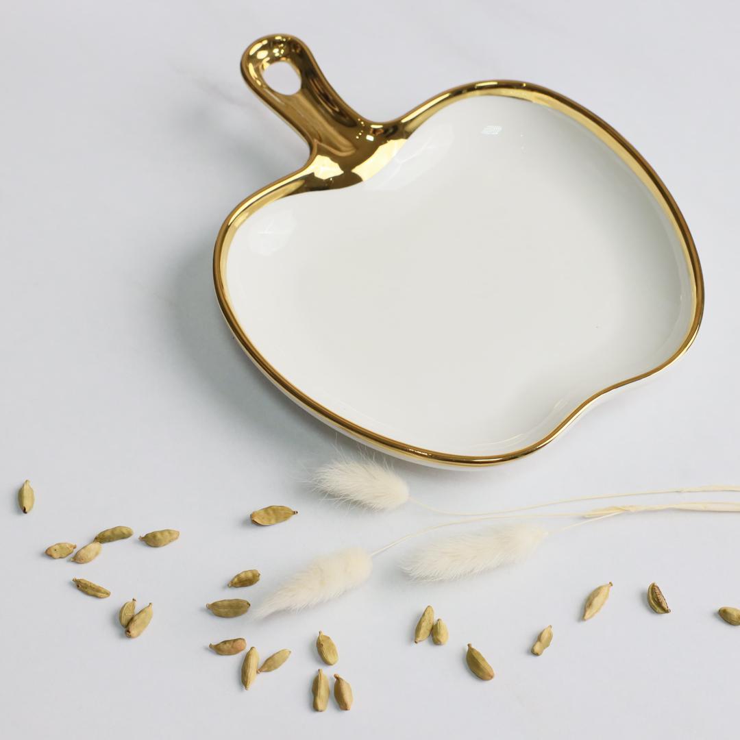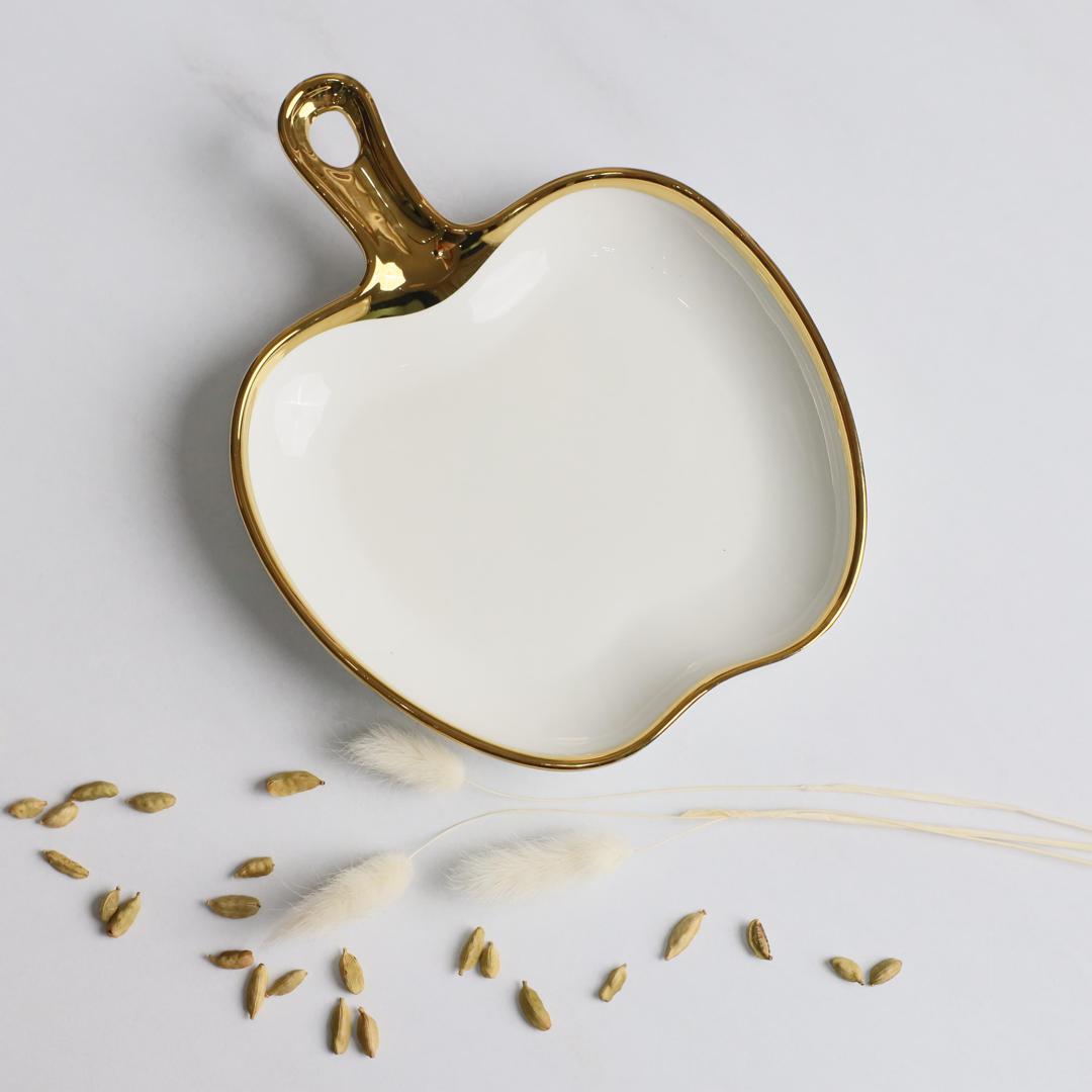 Набор посуды AksHome Блюдо фигурное MOONSHINE, керамика, белый+золото, 23см арт. ZN-381644