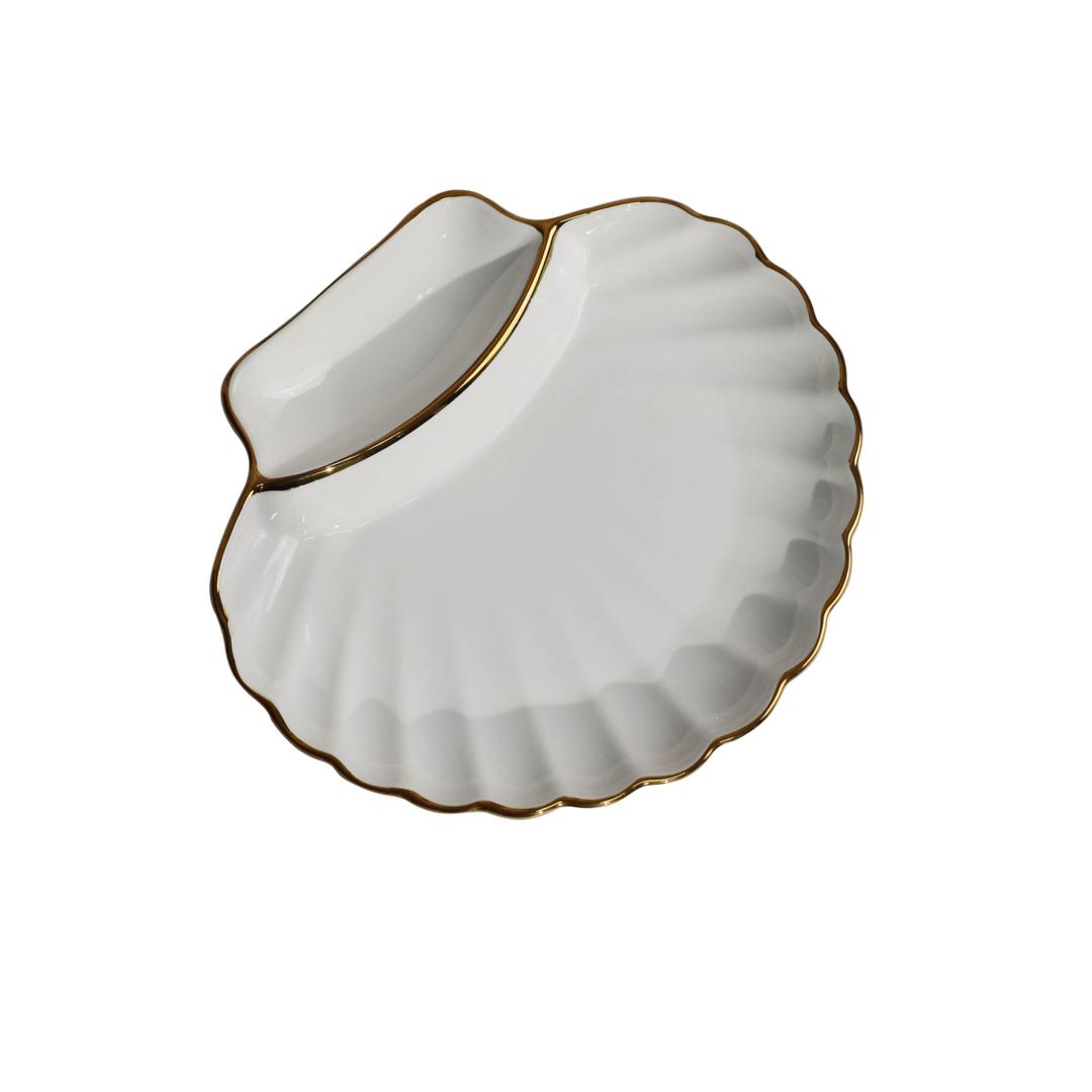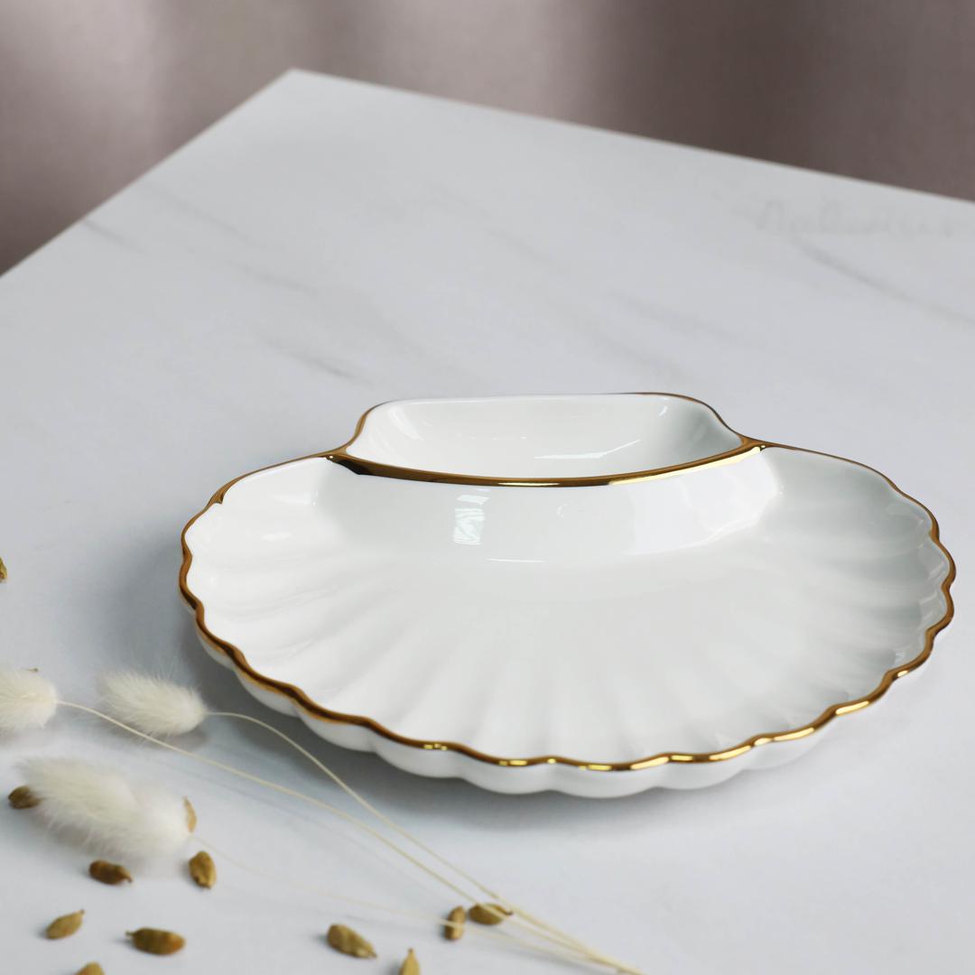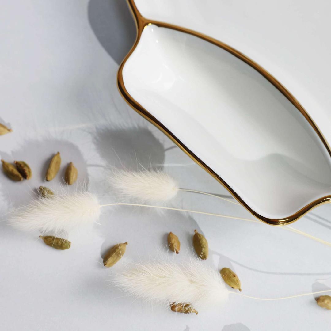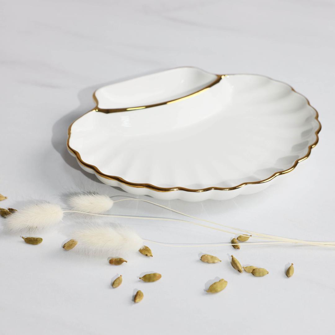 Набор посуды AksHome Блюдо фигурное MOONSHINE, керамика, белый+золото, 22*20*3см арт. ZN-381645