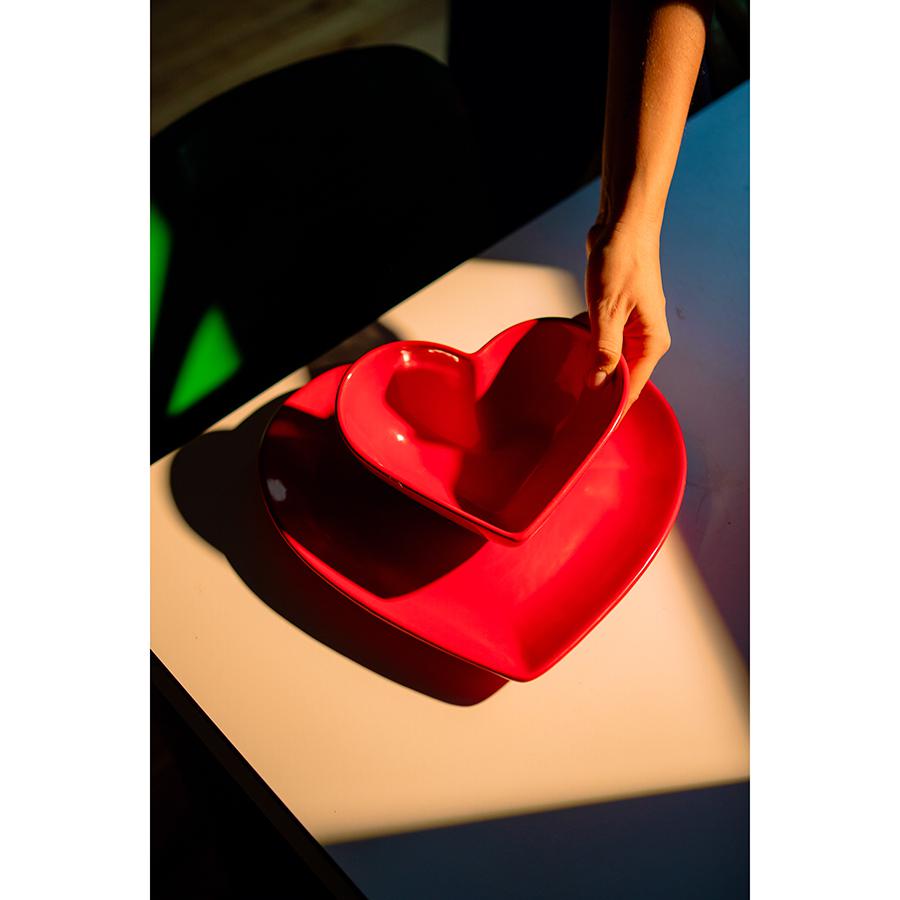 Тарелка в виде сердца Love добавит в любую сервировку нотки романтики, идеально подойдет для оригинальной подачи закусок, десертов, а также поможет поднять настроение во время завтраков. Благодаря своему яркому дизайну она станет центром притяжения взглядов на любом столе. Особенности и преимущества: - Изготовлена из устойчивой к износу и экологичной керамики. - Имеет яркий дизайн, который будет радовать глаз и акцентировать на себе внимание. - Станет отличным подарком для ценителей необычной посуды. Материал: керамика. Размер: 28х26,5х2 см. Цвет: красный. Можно мыть вручную и в посудомоечной машине. Подходит для использования в микроволновой печи.