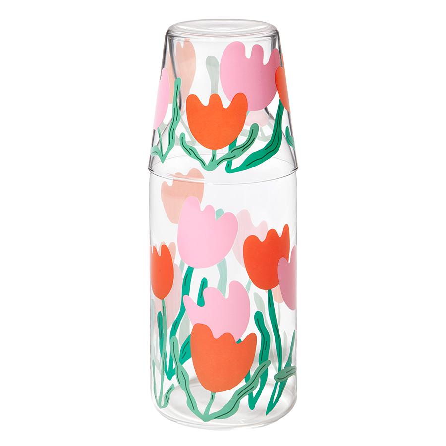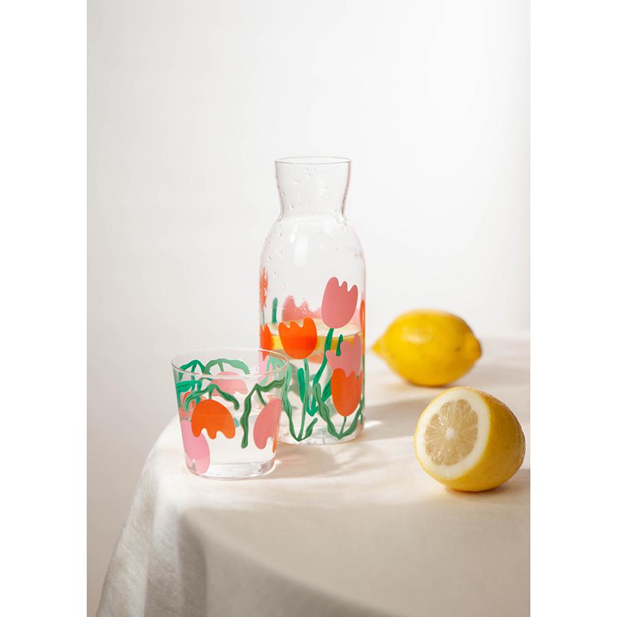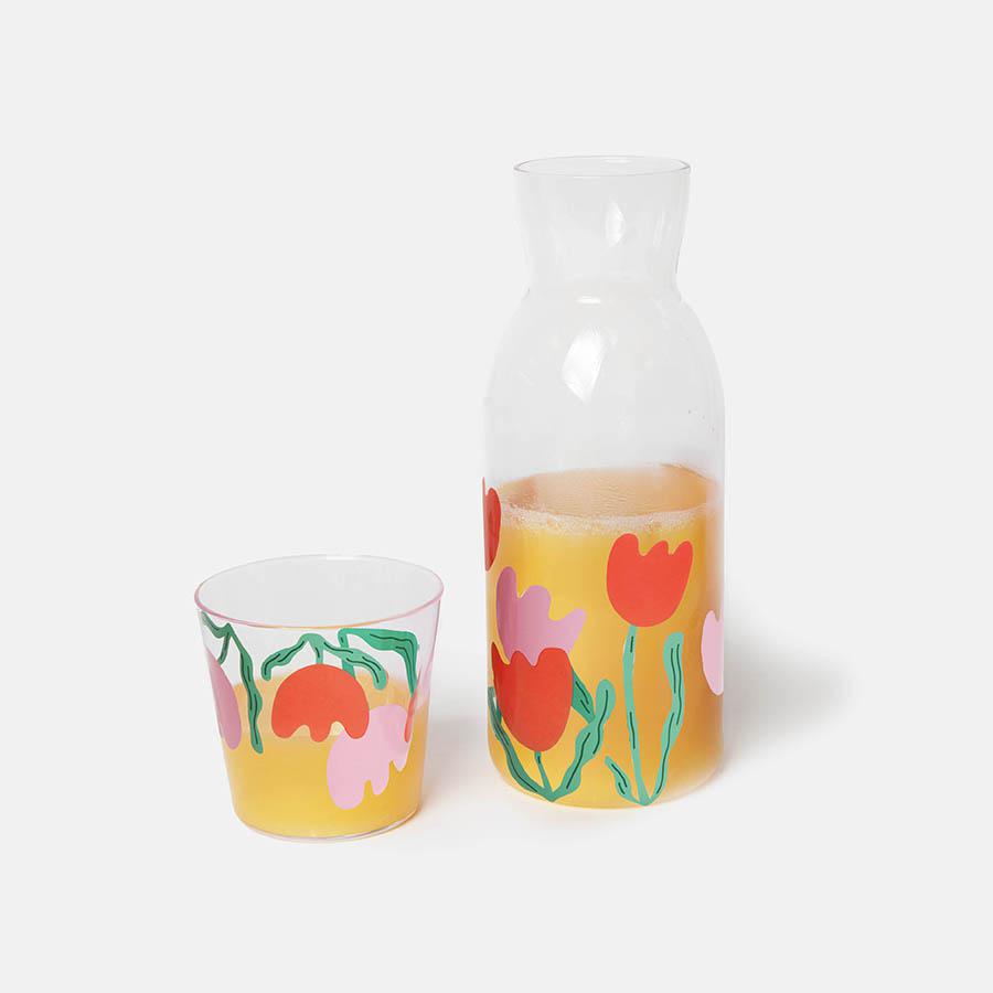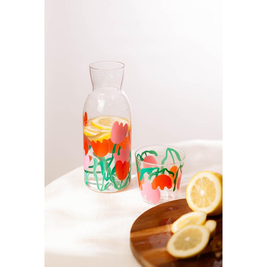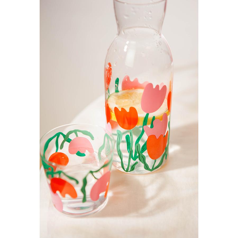 Набор из графина и стакана Bloom идеально подойдет для воды и других холодных напитков и добавит в любую сервировку нотки яркости и свежести. Цветочный декор подарит радостное настроение. Особенности и преимущества: - Стекло – экологически чистый, устойчивый к износу и загрязнениям материал, который не меняет вкус и запах напитков. - Яркий принт делает посуду более привлекательной и добавляет настроение в любую сервировку. - Специальная форма графина облегчает наливание напитков, минимизируя проливание. Материал: стекло. Размер графина: 8,5x8,5х22 см. Рекомендуется мыть вручную при помощи мягкой губки. Запрещается использование абразивных материалов и агрессивной бытовой химии.