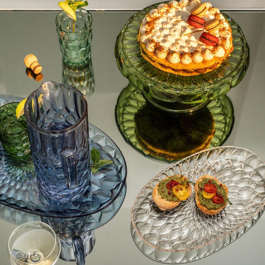 Элегантное блюдо для торта с крышкой Vanity от итальянского бренда Guzzini – необычная посуда, в которой гармонично сочетаются привлекательный дизайн и практичность. Благодаря высокой устойчивости современного органического материала к внешним воздействиям, она идеально подходит для сервировки как в помещении, так и на свежем воздухе. Инновационное акриловое стекло на биооснове получают из растительных отходов. За счет особенной рельефной поверхности и ярких цветов предметы изящно переливаются на свету, что делает их еще более привлекательными. Концепция Vanity строится вокруг посуды с несколькими цветовыми и текстурными сочетаниями в трех хроматических настроениях: Aria, Acqua и Terra, выражающие легкость воздуха, свежесть воды и тепло земли. Материал: акриловое стекло на биооснове. Диаметр: 26,5 см. Высота общая: 29 см. Высота крышки: 16 см. Допускается мытье в посудомоечной машине в режиме деликатной мойки.