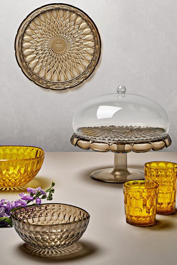Элегантное блюдо для торта с крышкой Vanity от итальянского бренда Guzzini – необычная посуда, в которой гармонично сочетаются привлекательный дизайн и практичность. Благодаря высокой устойчивости современного органического материала к внешним воздействиям, она идеально подходит для сервировки как в помещении, так и на свежем воздухе. Инновационное акриловое стекло на биооснове получают из растительных отходов. За счет особенной рельефной поверхности и ярких цветов предметы изящно переливаются на свету, что делает их еще более привлекательными. Концепция Vanity строится вокруг посуды с несколькими цветовыми и текстурными сочетаниями в трех хроматических настроениях: Aria, Acqua и Terra, выражающие легкость воздуха, свежесть воды и тепло земли. Материал: акриловое стекло на биооснове. Диаметр: 26,5 см. Высота блюда: 29 см. Высота крышки: 16 см. Допускается мытье в посудомоечной машине в режиме деликатной мойки.