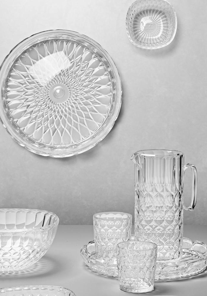 Большинство товаров Guzzini произведены из высококачественного органического стекла, легкого и прочного материала, внешний вид которого напоминает обычное стекло. Однако, оргстекло устойчиво к износу и повреждениям, обладает долгим сроком службы, его легко мыть и удобно хранить. Поэтому вся продукция Guzzini идеально подходит для сервировки стола на свежем воздухе – в загородном доме, на даче или во время пикника на природе.