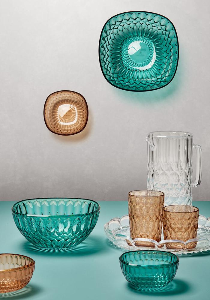 Большинство товаров Guzzini произведены из высококачественного органического стекла, легкого и прочного материала, внешний вид которого напоминает обычное стекло. Однако, оргстекло устойчиво к износу и повреждениям, обладает долгим сроком службы, его легко мыть и удобно хранить. Поэтому вся продукция Guzzini идеально подходит для сервировки стола на свежем воздухе – в загородном доме, на даче или во время пикника на природе.