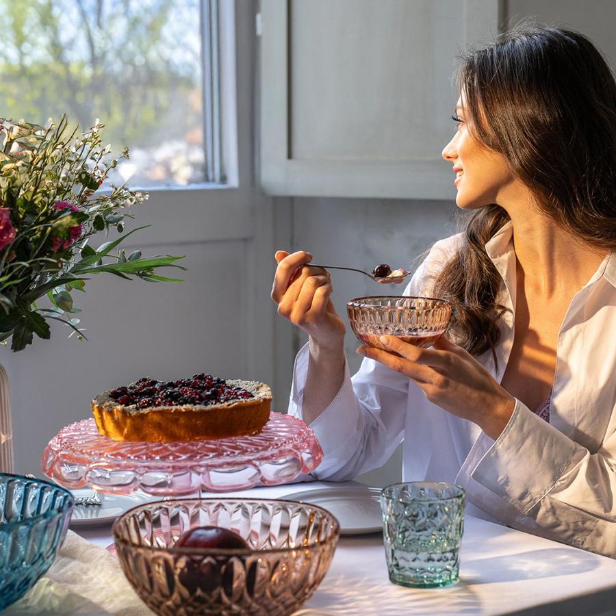 Набор чаш Vanity от итальянского бренда Guzzini – необычная посуда, в которой гармонично сочетаются привлекательный дизайн и практичность. Благодаря высокой устойчивости современного органического материала к внешним воздействиям, она идеально подходит для сервировки как в помещении, так и на свежем воздухе. Инновационное акриловое стекло на биооснове получают из растительных отходов. За счет особенной рельефной поверхности и ярких цветов предметы изящно переливаются на свету, что делает их еще более привлекательными. Концепция Vanity строится вокруг посуды с несколькими цветовыми и текстурными сочетаниями в трех хроматических настроениях: Aria, Acqua и Terra, выражающие легкость воздуха, свежесть воды и тепло земли. Материал: акриловое стекло на биооснове. Диаметр: 11,9 см. Высота: 5,5 см. Всего в наборе: 6 шт. Допускается мытье в посудомоечной машине в режиме деликатной мойки.