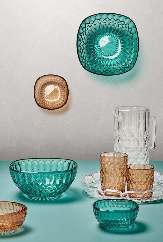 Большинство товаров Guzzini произведены из высококачественного органического стекла, легкого и прочного материала, внешний вид которого напоминает обычное стекло. Однако, оргстекло устойчиво к износу и повреждениям, обладает долгим сроком службы, его легко мыть и удобно хранить. Поэтому вся продукция Guzzini идеально подходит для сервировки стола на свежем воздухе – в загородном доме, на даче или во время пикника на природе.