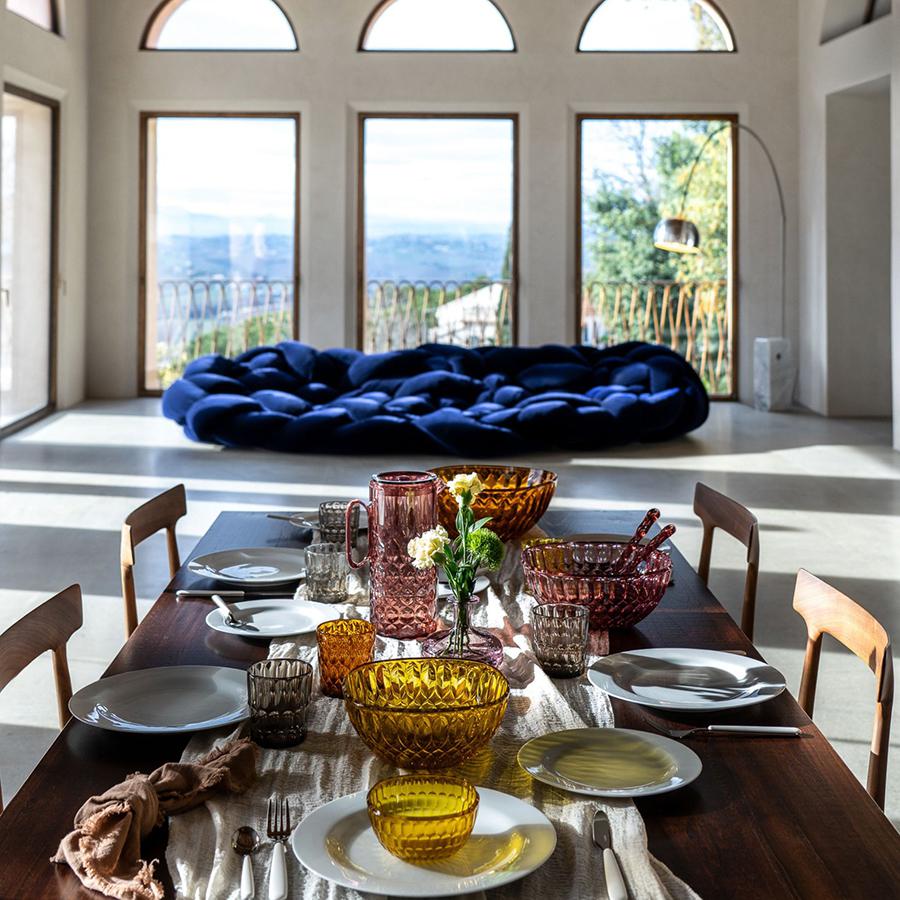 Большинство товаров Guzzini произведены из высококачественного органического стекла, легкого и прочного материала, внешний вид которого напоминает обычное стекло. Однако, оргстекло устойчиво к износу и повреждениям, обладает долгим сроком службы, его легко мыть и удобно хранить. Поэтому вся продукция Guzzini идеально подходит для сервировки стола на свежем воздухе – в загородном доме, на даче или во время пикника на природе.