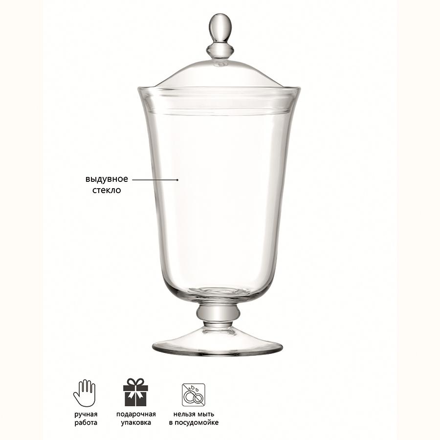 Бонбоньерка из выдувного стекла Serve – не просто красивый, но и функциональный элемент сервировки. Такой необычный аксессуар добавит в интерьер кухни особый шарм, позволит красиво хранить и подавать к столу конфеты и другие сладости. Serve — это элегантные формы, подчеркнутые кристальным блеском стекла ручной работы. Предметы коллекции подходят для сервировки в различных стилях. Линейка придется по душе всем, кто любит красивую и практичную посуду. Важно! Поскольку изделие изготавливается вручную, его размеры могут незначительно отличаться и допускается наличие пузырьков в толще стекла: круглые < 3 мм, овальные < 5 мм и их небольшие скопления в виде пены. Также возможно наличие прожилок (видимых нитей) на стекле менее 50% длины окружности любого предмета. Все это не брак, а допустимые индивидуальные особенности товара, произведенного ручным способом. Материалы: выдувное стекло. Высота: 38 см. Ширина: 18 см. Рекомендуется мыть вручную в теплой мыльной воде и вытирать насухо мягкой тканью.