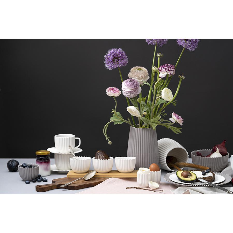 Изящные белые подставки для яиц наверняка понравятся тем, кто считает завтрак самым главным приемом пищи и хочет, чтобы он был безупречным даже в будний день. Подставки изготовлены из фарфора и имеют рифленую поверхность c оригинальным зубчатым краем — это фирменная черта коллекции Edge. В набор входят две подставки, которые при желании можно дополнить чашками и тарелками с таким же дизайном. Размеры: 5х5 см. Внутренний диаметр: 4 см. Материал: фарфор. • Можно использовать в микроволновой печи • Можно мыть в посудомоечной машине • Можно использовать в духовке при температуре не более 180° C • Можно замораживать