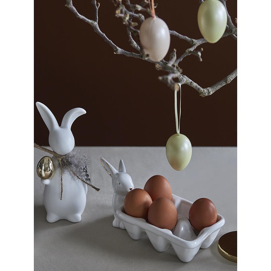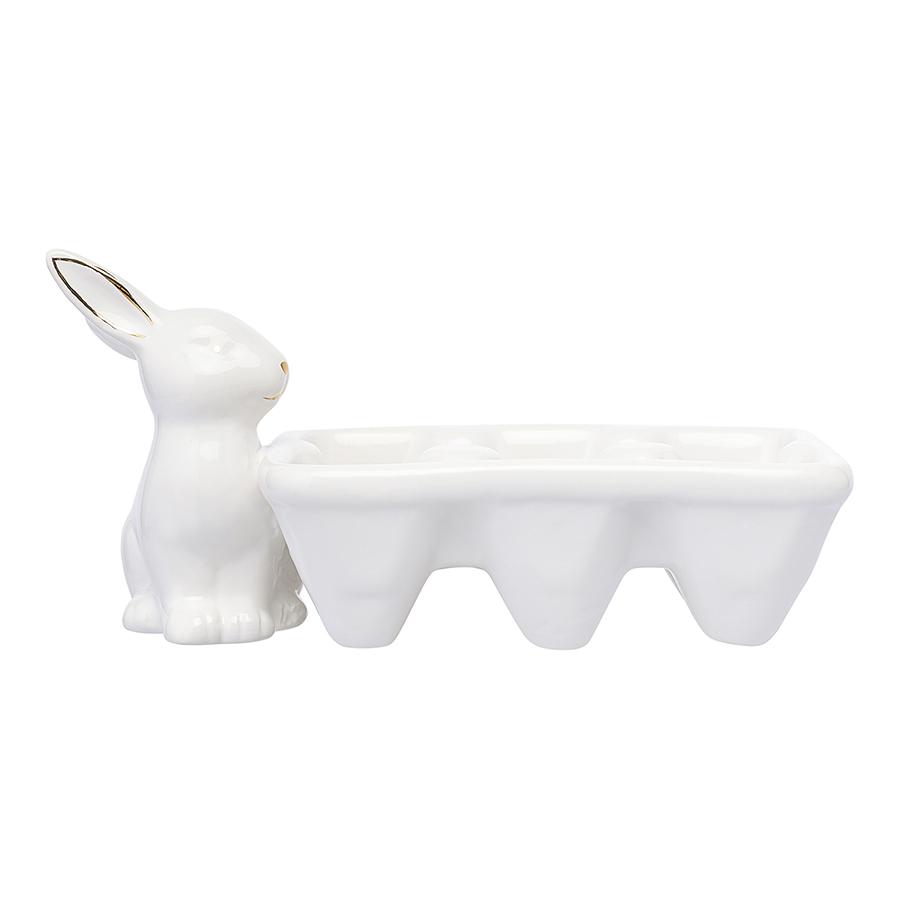 Подставка Trendy Easter из коллекции Essential поможет не только красиво разместить пасхальные яйца, но и станет стильным элементом праздничного декора, который непременно привлечет к себе внимание и создаст в интерьере теплую, душевную атмосферу. Особенности и преимущества: - Изготовлена из доломита – природного материала, обладающего прочностью и долговечностью. - Украшена фигуркой кролика – один из главных символов Пасхи, олицетворяющий изобилие и плодородие. - Выполнена в белом цвете, что позволяет сочетать ее с декором и посудой любых оттенков. - Позволяет разместить одновременно шесть яиц. Материал: доломит. Размер: 19,3х10x10,5 см. ! Рекомендуется мыть вручную без применения агрессивных моющих средств.