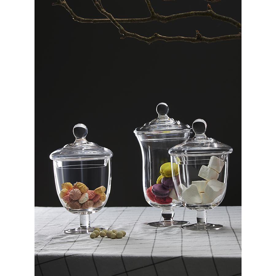 Бонбоньерка Sugary – прекрасное решение для удобного хранения и красивой подачи всевозможных сладостей. Этот изящный предмет сервировки украсит стол и станет прекрасным дополнением любого кухонного интерьера. Особенности и преимущества: - Изделие выполнено из выдувного стекла ручным способом, что обеспечивает ему неповторимый вид, яркий блеск и премиальное качество. - Под прозрачной крышкой-колпаком сладкое угощение выглядит еще более аппетитным и притягательным. - Помимо декоративной функции, крышка защищает содержимое от заветривания и попадания влаги. - Наличие ножки на широком основании делает дизайн элегантным. Материал: выдувное стекло. Высота: 25 см. Объем: 1,2 л. Рекомендуется очищение ручным способом при помощи мягкой губки с жидким моющим средством.