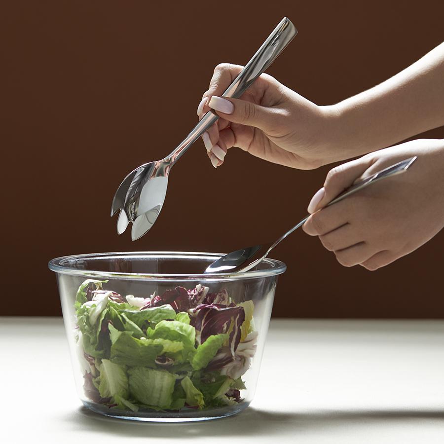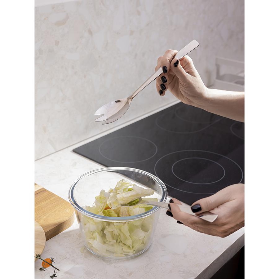 Ложки для салата Gleam от дизайнерского бренда Liberty Jones – это не только практичные аксессуары для вашей кухни, но и замечательный подарок для ценителей кулинарных изысков и стильной посуды. Особенности и преимущества: - Приборы выполнены из высококачественной нержавеющей стали 18/10, что гарантирует им прочность, долговечность и устойчивость к коррозии. - Удлиненные ручки не только создают элегантный вид, но и обеспечивают комфортное использование, предотвращая неприятные брызги на одежде. - Одна из ложек оснащена 3 зубчиками, что делает ее идеальным инструментом для аккуратного накладывания салата и захвата деликатных ингредиентов. - Округлая ложка отлично подходит для перемешивания, накладывания салата и добавления жидких ингредиентов. - Набор в современном стиле идеально вписывается в интерьер любой кухни и различные варианты сервировки. Материалы: нержавеющая сталь 304 (18/10). Длина ложек: 24,8 см и 25 см. Вес ложек: 72 г и 68 г. Количество предметов в наборе: 2 шт. Приборы можно мыть в посудомоечной машине.