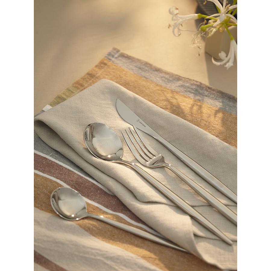 Столовые приборы Globe от дизайнерского бренда Liberty Jones сделают любую сервировку более стильной и утонченной, а каждый прием пищи – особенным. Набор состоит из 16 предметов и включает все необходимое для обслуживания 4-х человек. Особенности и преимущества: - Изделия из высококачественной нержавеющей стали 18/10 отличаются долговечностью и стойкостью к коррозии. - Лезвия ножей изготовлены из нержавеющей стали 13/0, благодаря чему обладают устойчивостью к механическим повреждениям и долго остаются острыми. - Округлые формы придают приборам элегантный и в то же время интересный вид. Материалы: нержавеющая сталь 304 (18/10), нержавеющая сталь 13/0. Длина ножа: 22,5 см. Вес ножа: 61 г. Длина вилки: 22 см. Вес вилки: 69 г. Длина ложки: 21,5 см. Вес ложки: 84 г. Длина чайной ложки: 12 см. Вес чайной ложки: 40 г. Цвет: серебристый. Количество предметов в наборе: 16 шт. Приборы можно мыть в посудомоечной машине.