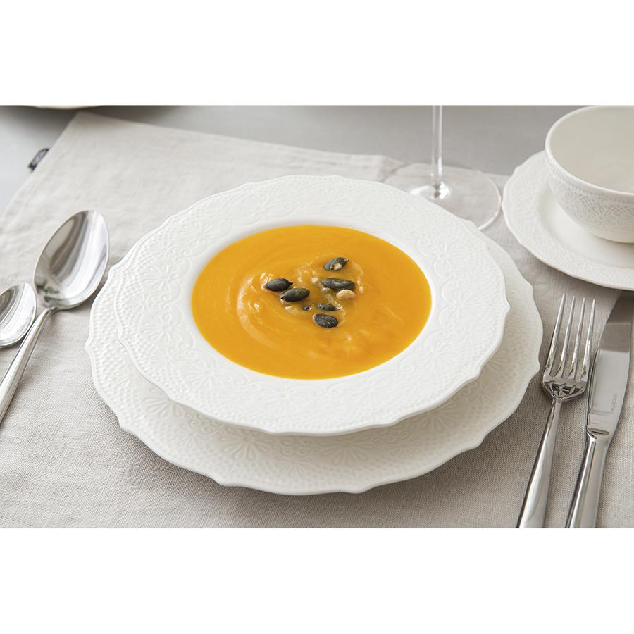 Тарелки Tracery великолепно дополнят коллекцию стильной и практичной посуды. Емкости из белоснежного фарфора с рельефной поверхностью отличаются презентабельным внешним видом. Материал изготовления неприхотлив в уходе, не впитывает загрязнения, является экологичным и безопасным для здоровья. Тарелки идеально подходят для подачи вторых блюд. Их можно использовать как для повседневной, так и для праздничной сервировки стола. Чистое сырье высочайшего качества и собственная формула глазуровки с обжигом при температуре 1250 °C делают изделия из фарфора особо прочными, устойчивыми к растрескиванию и появлению сколов. Глазурь и декор не тускнеют со временем, сохраняя первоначальный цвет и блеск. Наши продукты прошли испытания на отсутствие в составе свинца и кадмия в соответствии со стандартными тестами FDA. Материал: фарфор. Размеры: 26х26х2 см. Количество предметов в наборе: 2 шт. Посуду рекомендуется очищать от загрязнений в теплой воде с помощью мягкой губки с жидким средством. Допускается мытье в посудомоечной машине, использование в морозильной камере, микроволновой печи и духовке при температуре не выше 180 °C.