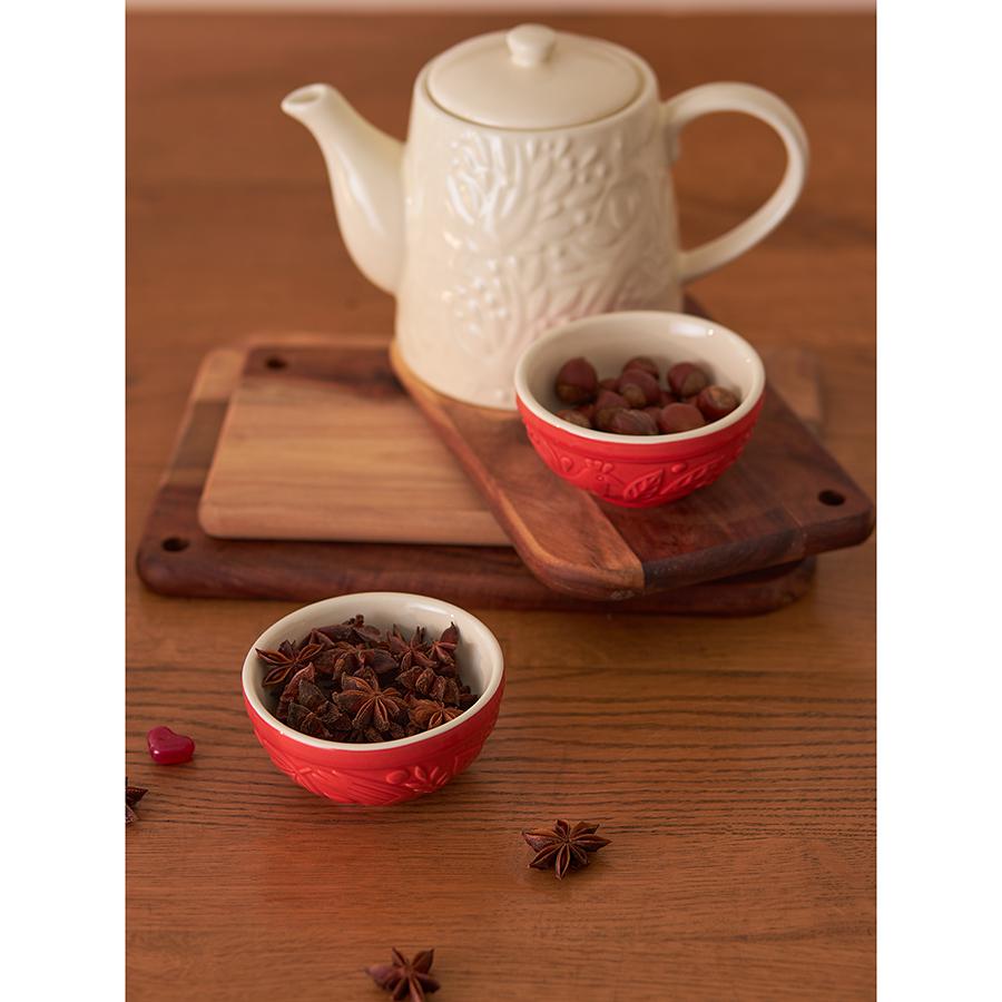 Пиалы из коллекции Birds of Paradise – качественная посуда из экологичной каменной керамики, которая великолепно вписывается в любую сервировку и делает интерьер кухни более уютным. Отличительной особенностью серии является объемный узор природной тематики, добавляющий дизайну элегантные нотки. Благодаря высокой прочности и устойчивости материала к износу изделия не теряют привлекательный внешний вид на протяжении всего срока службы. Покрытие глазурью облегчает уход, обеспечивает декоративность и дополнительную защиту от внешних воздействий. Емкости объемом 190 мл идеально подходят для подачи к столу напитков, различных соусов и десерта. Наши продукты прошли испытания на отсутствие в составе свинца и кадмия в соответствии со стандартными тестами FDA. Коллекция Birds of Paradise разработана английской художницей Karen Wall, основным направлением творчества которой является создание иллюстраций для посуды, домашнего текстиля и детских книг. В основе дизайна – природные мотивы, вдохновленные традиционным фольклором Великобритании 19-го века. Атмосфера волшебного леса с райскими птицами погружает в мир добрых грез и фантазий, где всегда тепло, уютно и есть место чудесам. Материал: каменная керамика. Размеры: 10,3х10,3х5,2 см. Объем: 190 мл. Цвет: красный. Количество в наборе: 2 шт. Можно использовать в микроволновой печи, духовке при температуре не более 230° C, а также замораживать при температуре не ниже -20° C. Допускается мытье в посудомоечной машине.