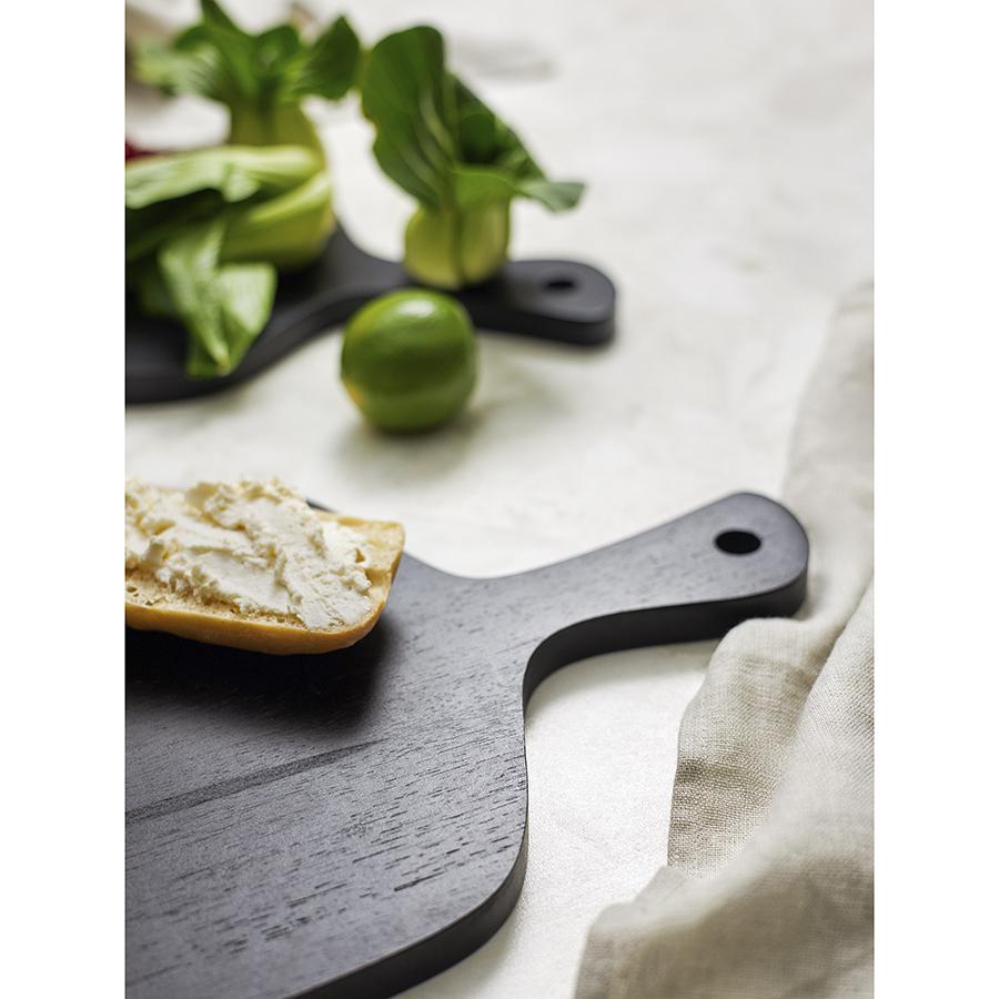 Доска сервировочная Rubris – прекрасный вариант для эффектной подачи к столу всевозможных закусок и нарезок. Благодаря натуральному дизайну она великолепно вписывается в любую сервировку и идеально подходит для создания на кухне комфортной и уютной атмосферы. Особенности и преимущества: - Изготовлена из натурального материала, который не выделяет вредных веществ при контакте с пищевыми продуктами. - Благодаря высокой прочности и устойчивости каучукового дерева к воздействию влаги идеально подходит для использования на кухне. - За счет лаконичного дизайна и естественной цветовой гаммы легко вписывается в различные варианты сервировки и любые интерьерные решения. - Имеет специальное отверстие для компактного хранения на настенных держателях. Материал: каучуковое дерево. Размеры: 23х70 см. Цвет: черный. Доску рекомендуется мыть вручную при помощи мягкой губки. После очищения ее необходимо хорошо просушить и только потом использовать. Запрещается применение абразивов и агрессивной бытовой химии.