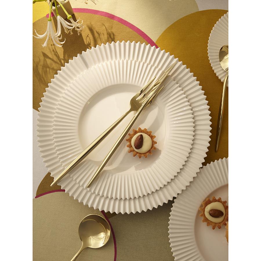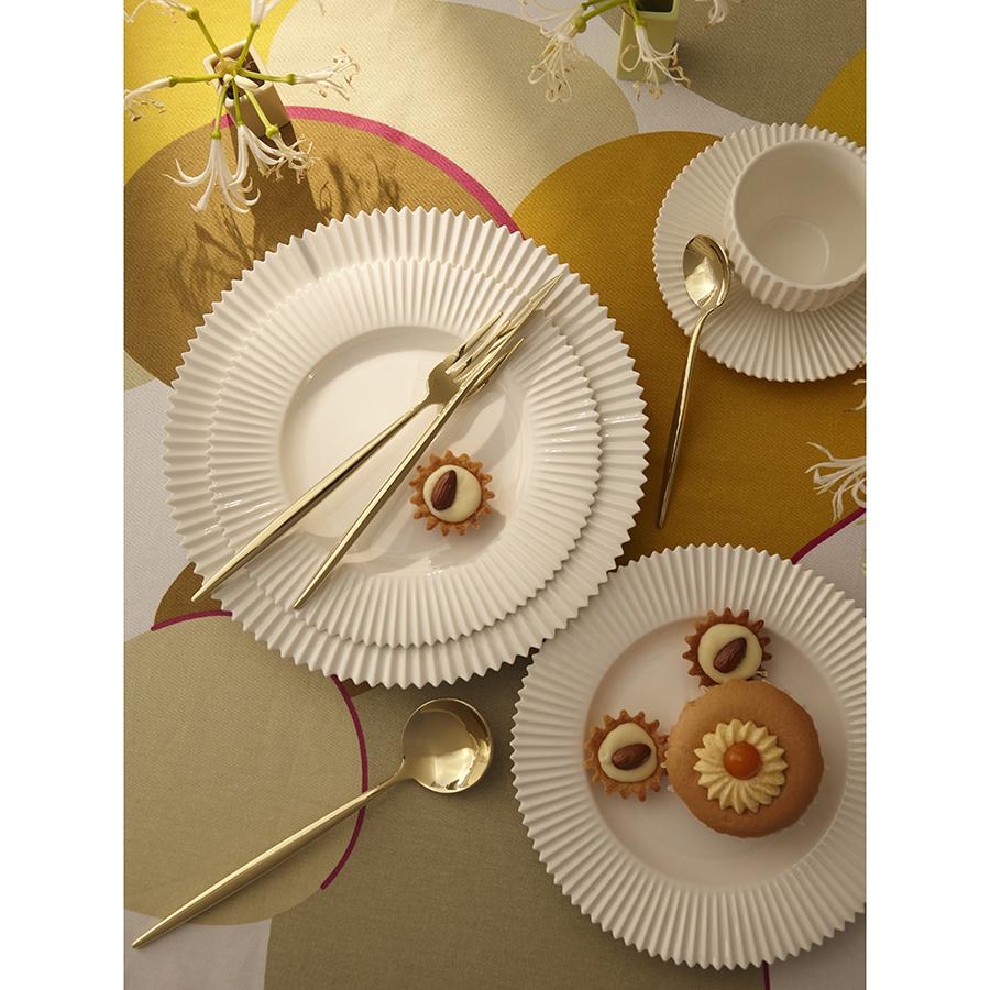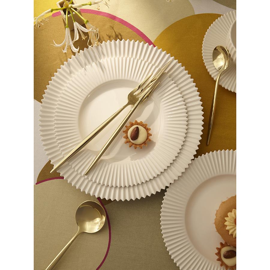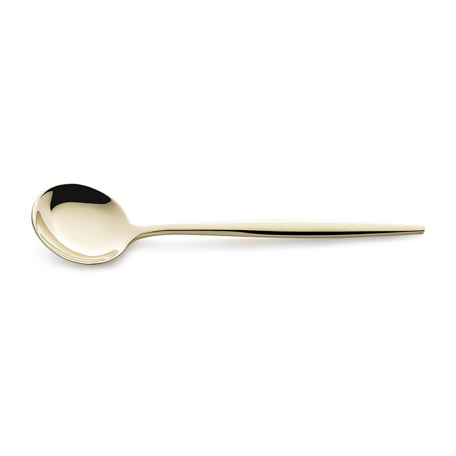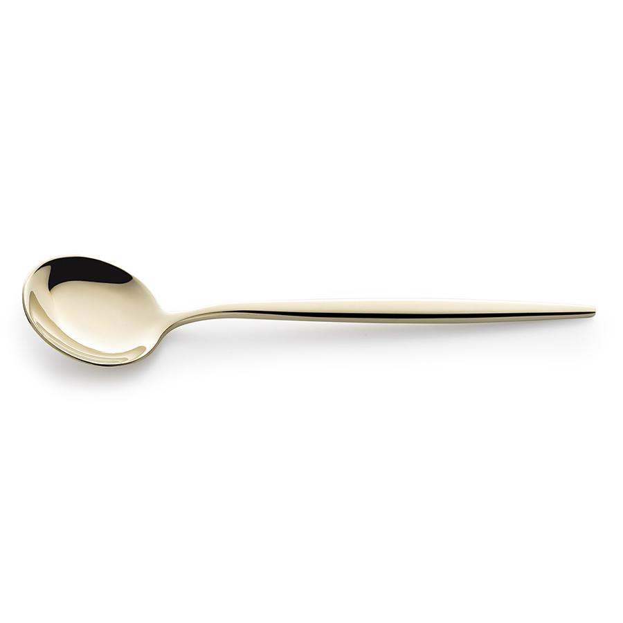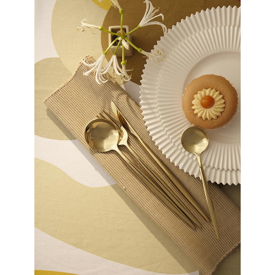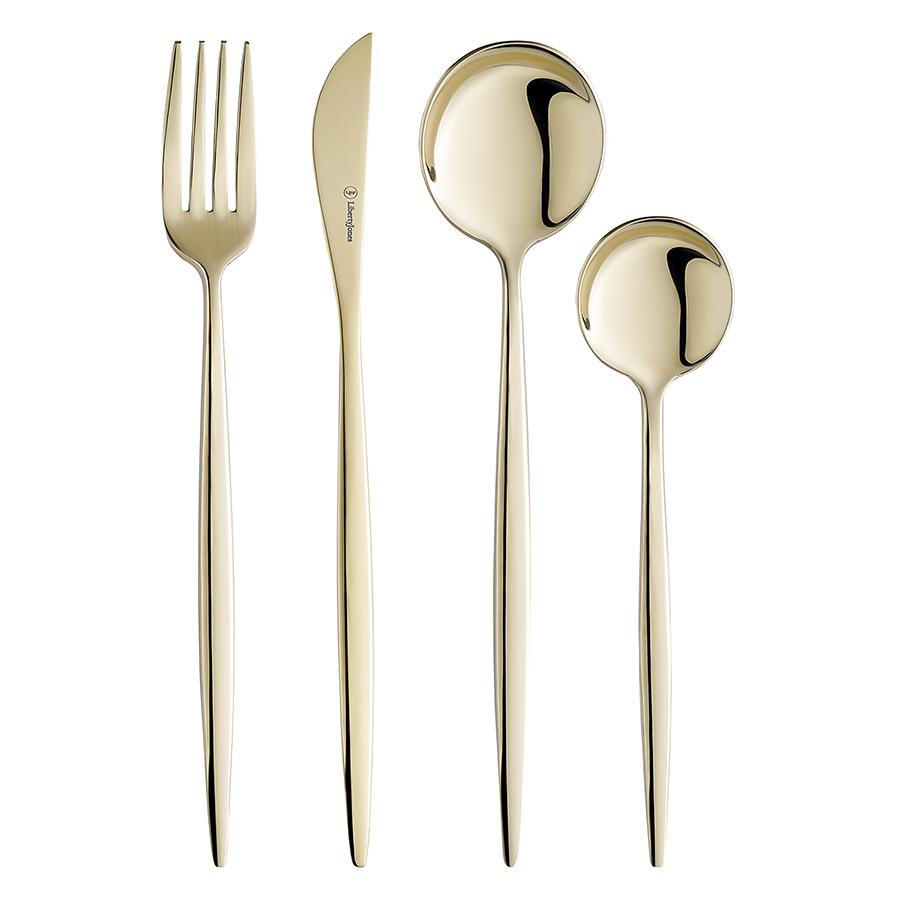 Столовые приборы Globe от дизайнерского бренда Liberty Jones сделают любую сервировку более стильной и утонченной, а каждый прием пищи – особенным. Набор состоит из 16 предметов и включает все необходимое для обслуживания 4-х человек. Особенности и преимущества: - Изделия из высококачественной нержавеющей стали 18/10 отличаются долговечностью и стойкостью к коррозии. - Лезвия ножей изготовлены из нержавеющей стали 13/0, благодаря чему обладают устойчивостью к механическим повреждениям и долго остаются острыми. - Рабочая часть приборов имеет прочное и износостойкое титановое покрытие, которое при этом является самым безопасным. - Округлые формы придают приборам элегантный и в то же время интересный вид. - Аксессуары золотистого цвета привносят в сервировку нотки роскоши и благородства. Материалы: нержавеющая сталь 304 (18/10), нержавеющая сталь 13/0. Длина ножа: 22,5 см. Вес ножа: 61 г. Длина вилки: 22 см. Вес вилки: 69 г. Длина ложки: 21,5 см. Вес ложки: 84 г. Длина чайной ложки: 16 см. Вес чайной ложки: 40 г. Цвет: золотистый. Количество предметов в наборе: 16 шт. Приборы рекомендуется мыть вручную.